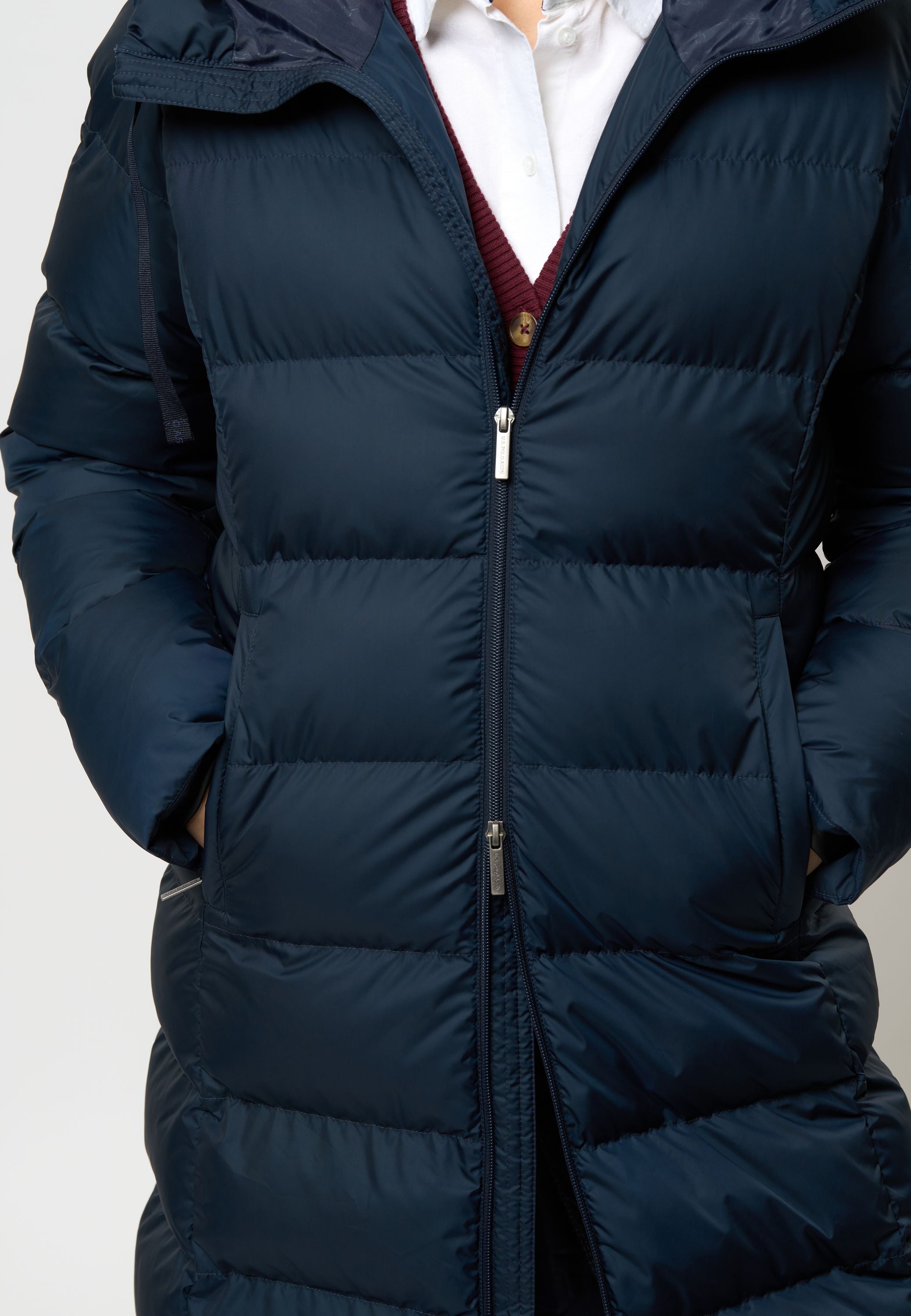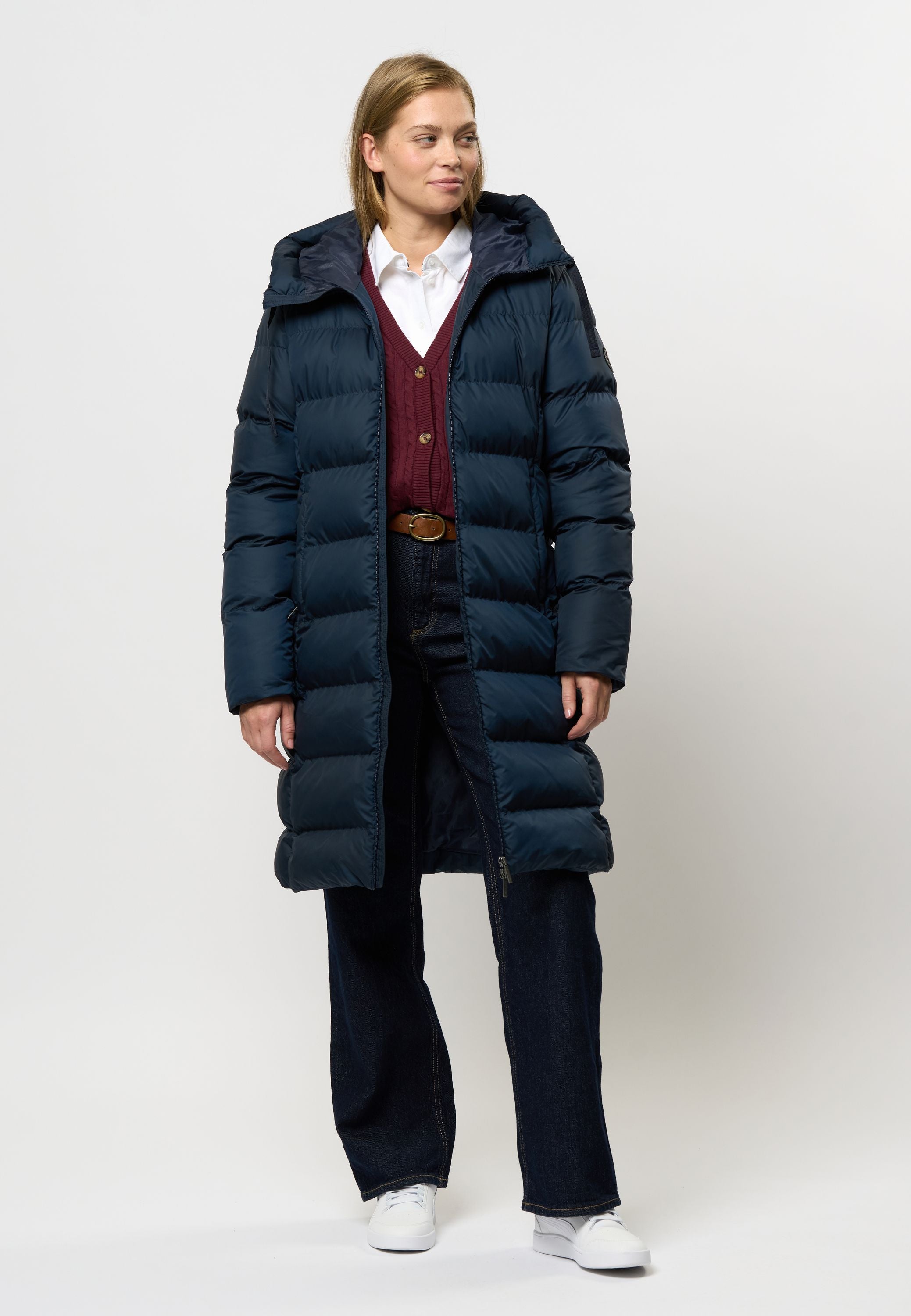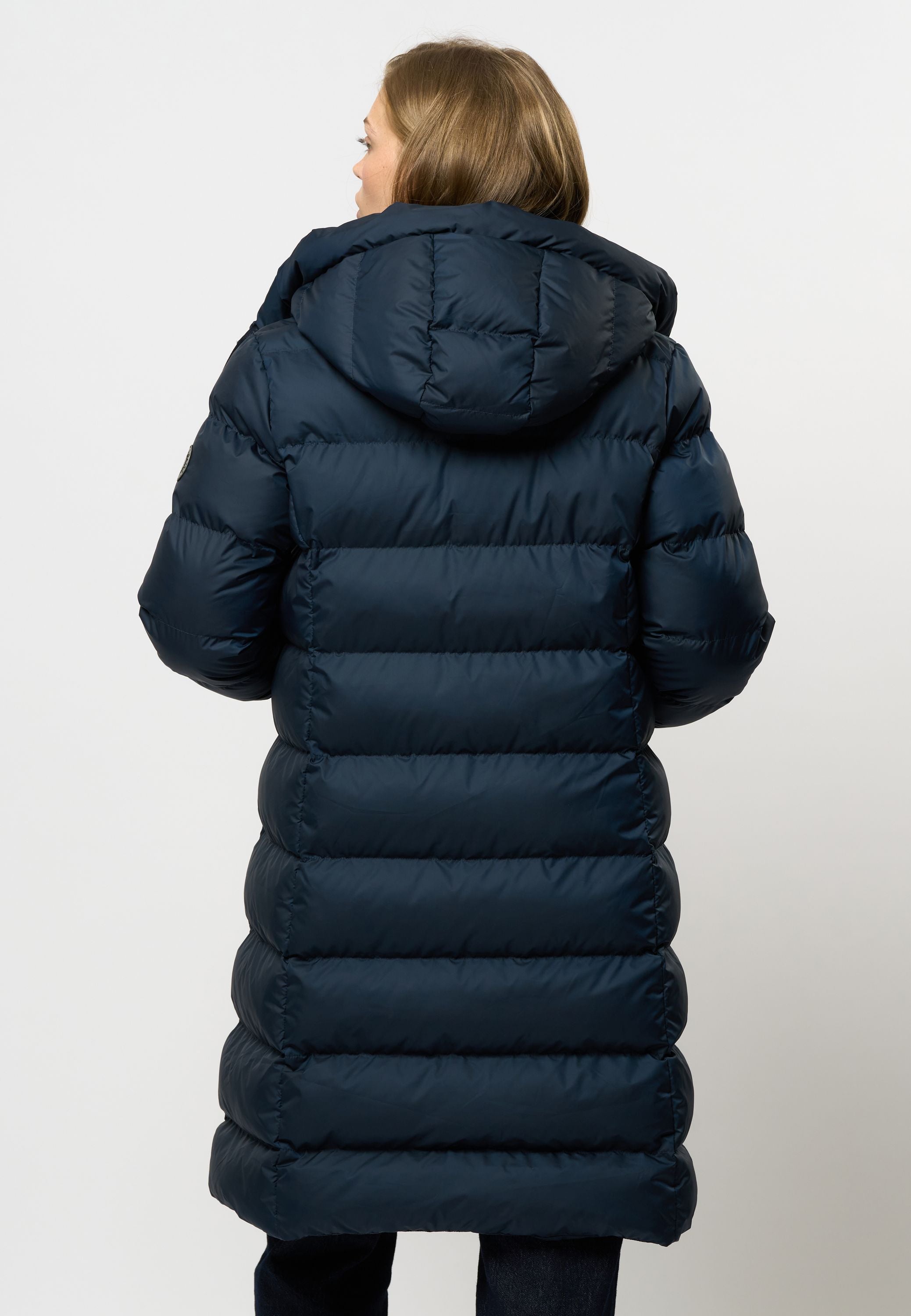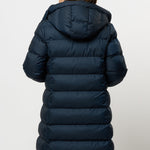 • Lång quiltad vinterjacka med justerbar huva