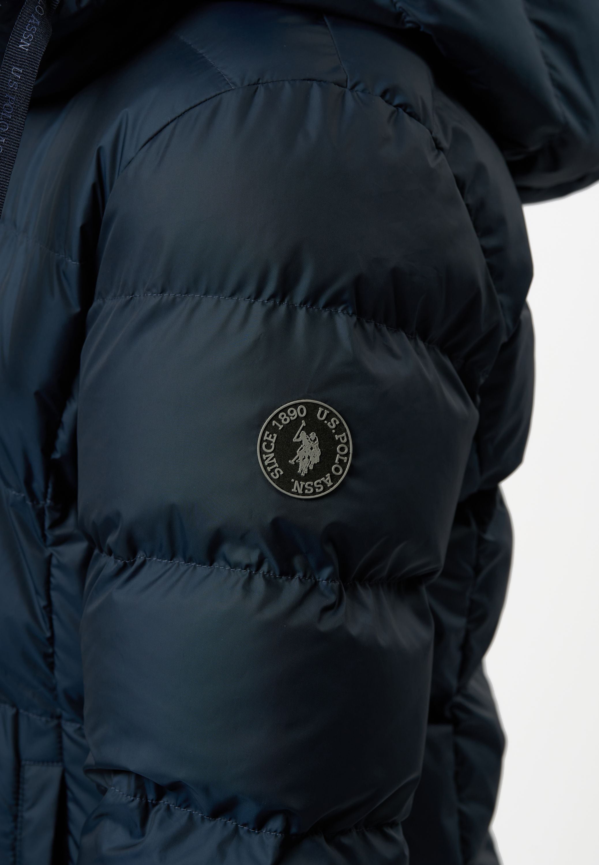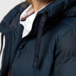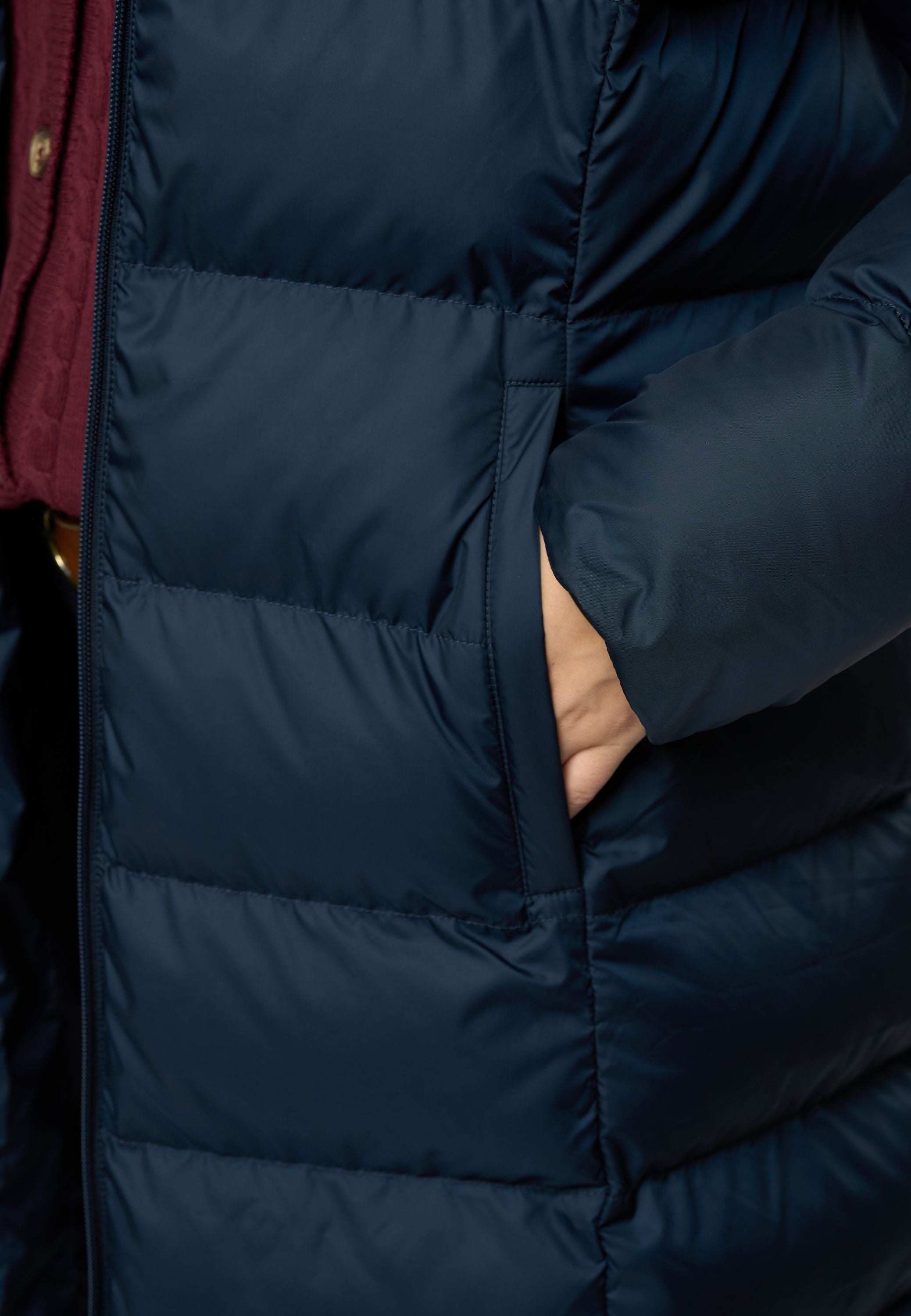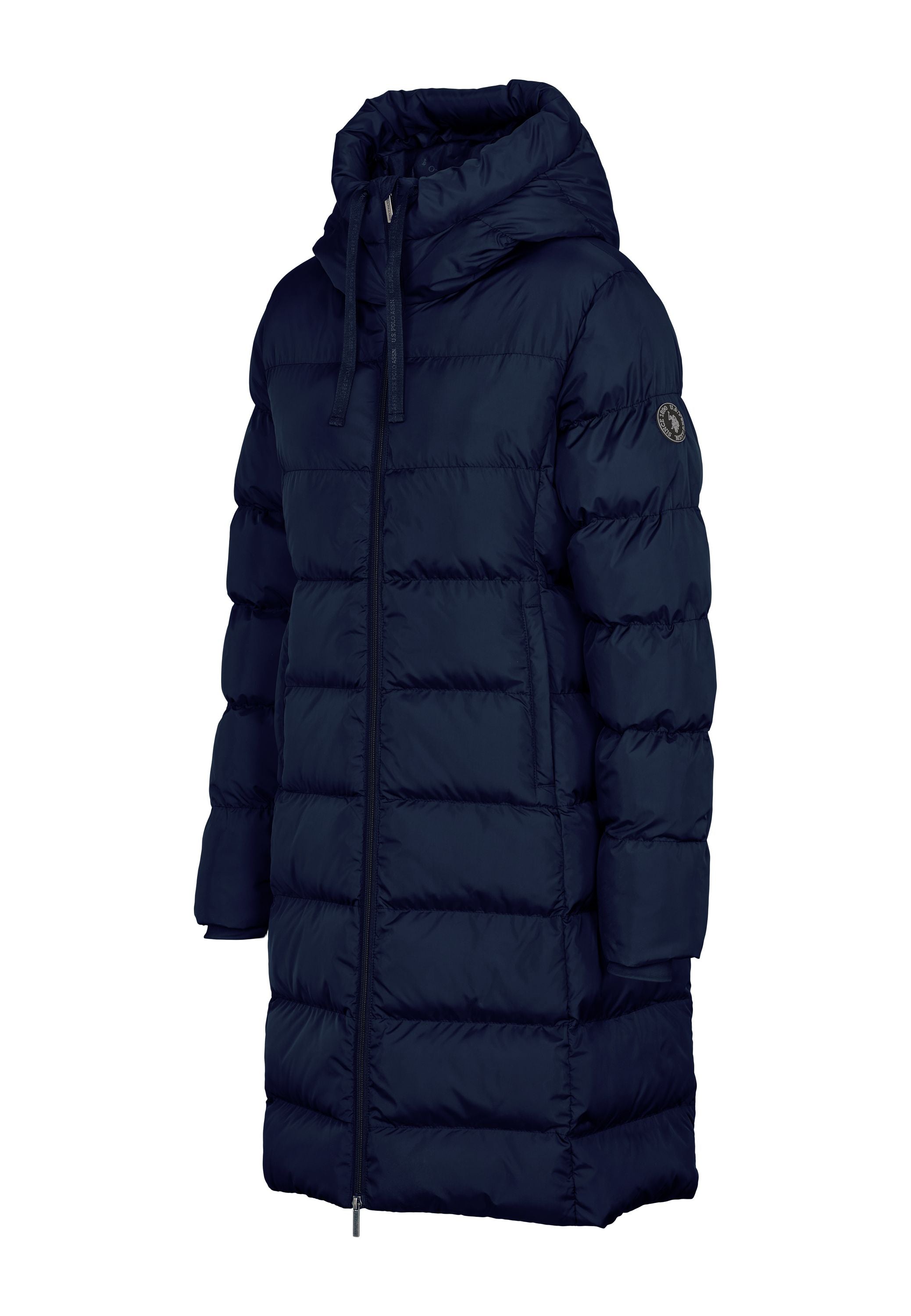 • Lång quiltad vinterjacka med justerbar huva