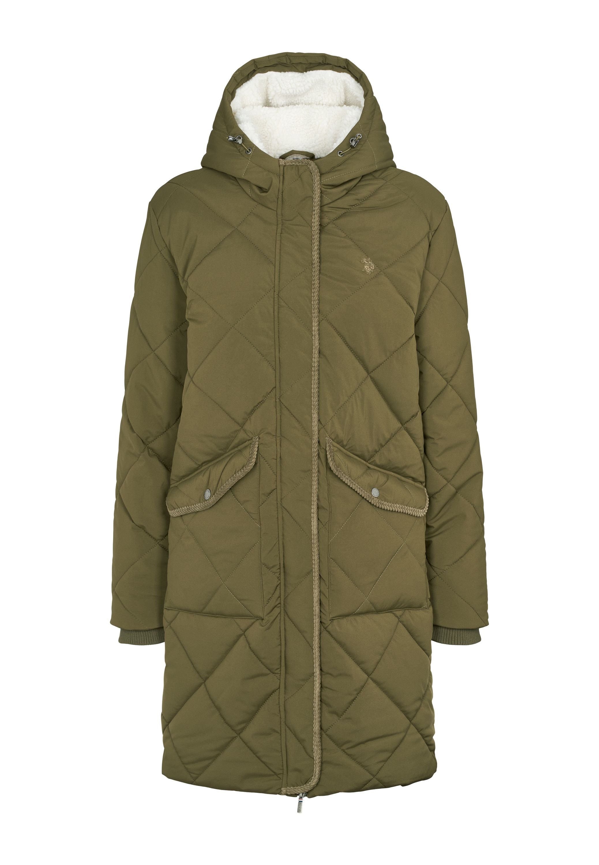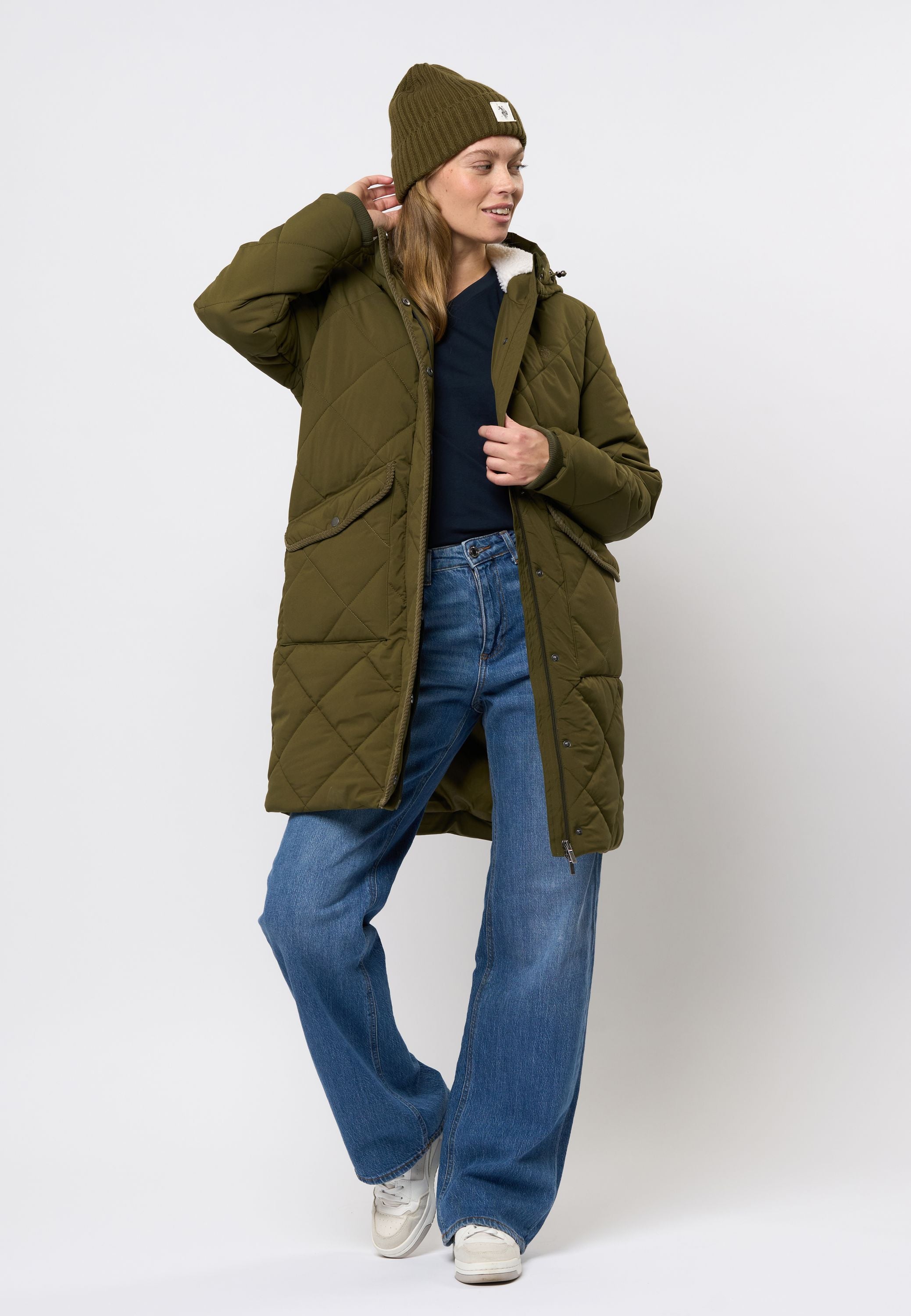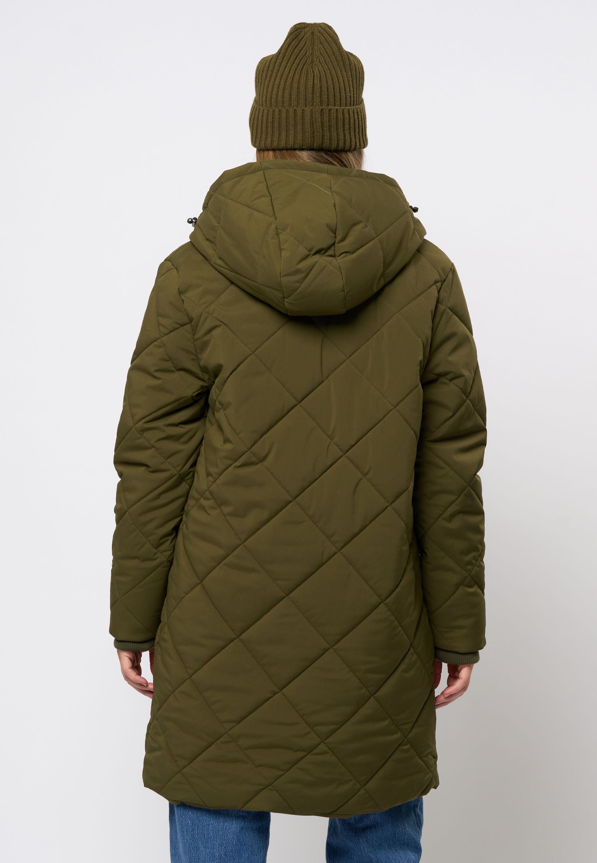 Karola är en lång, vadderad jacka med justerbar huva och mjukt foder som ger extra värme och komfort under kalla dagar. Det klassiska quiltade mönstret ger jackan struktur, medan detaljer som tvåvägsdragkedja och praktiska fickor gör den perfekt till vardags. Ett mångsidigt ytterplagg som passar hela vintern.