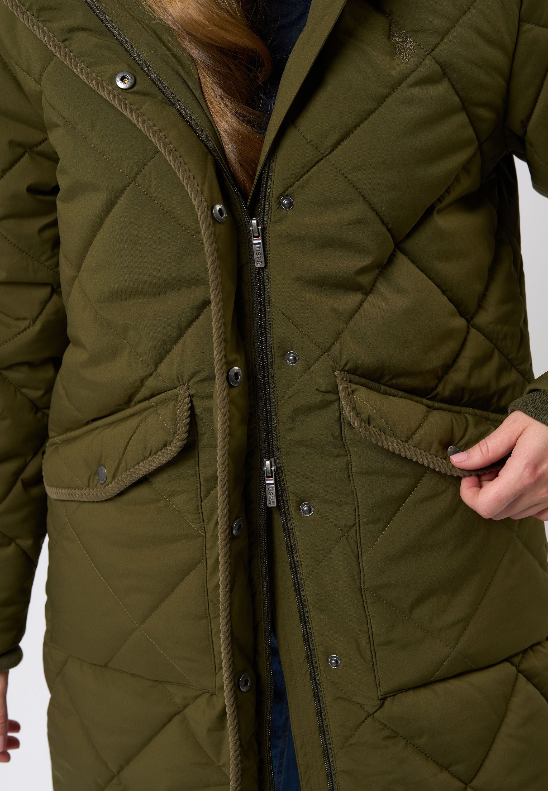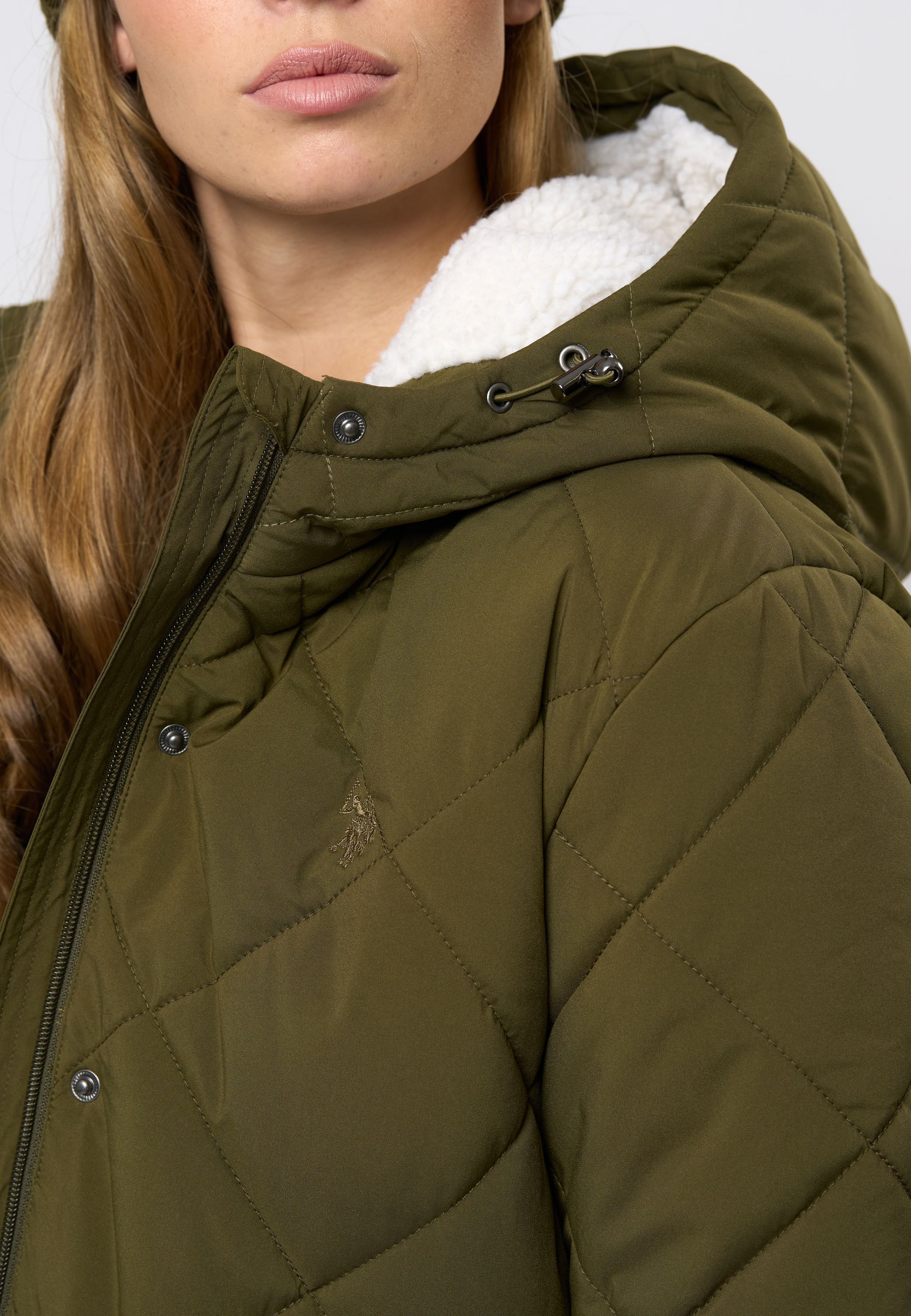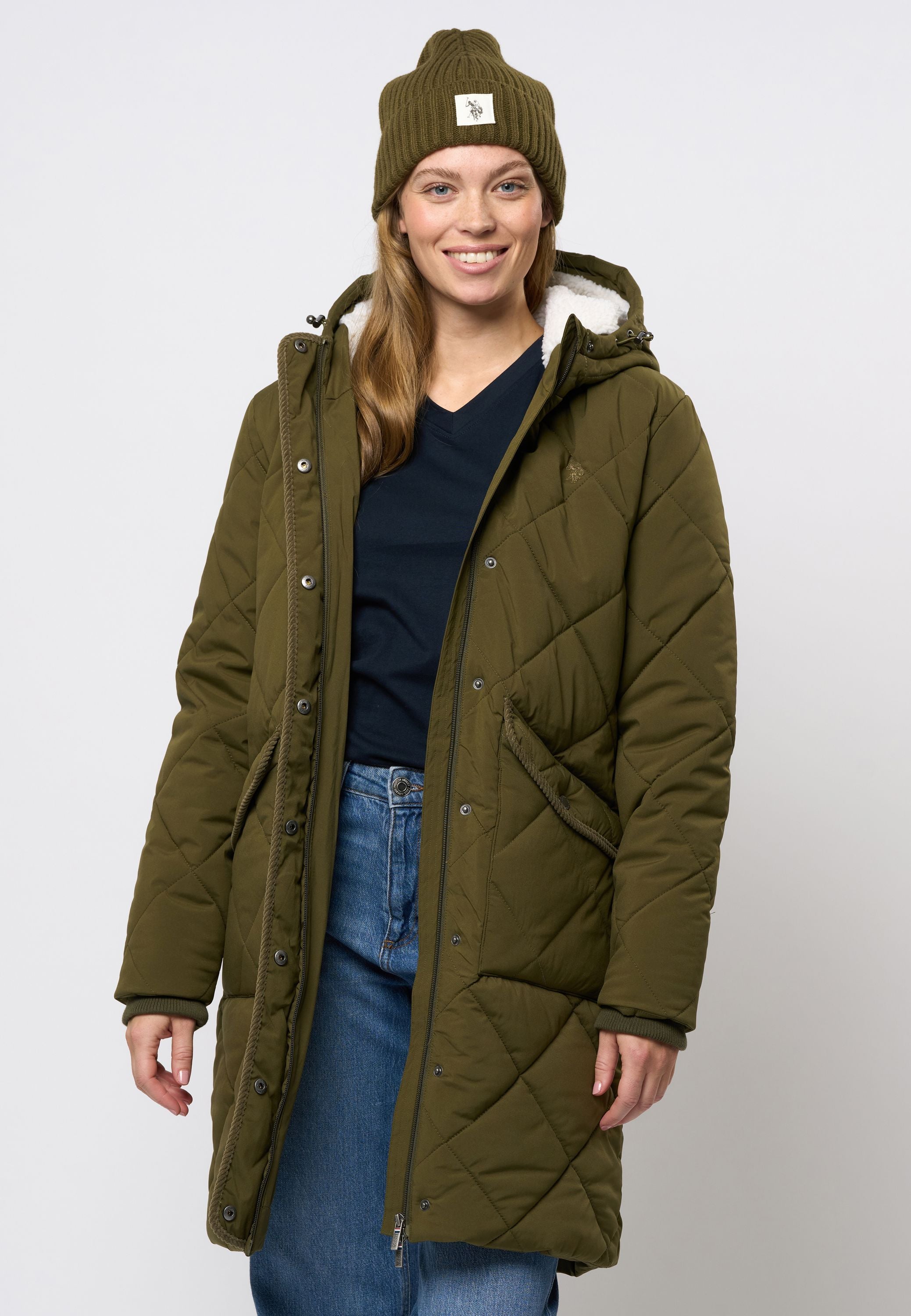 Karola är en lång, vadderad jacka med justerbar huva och mjukt foder som ger extra värme och komfort under kalla dagar. Det klassiska quiltade mönstret ger jackan struktur, medan detaljer som tvåvägsdragkedja och praktiska fickor gör den perfekt till vardags. Ett mångsidigt ytterplagg som passar hela vintern.