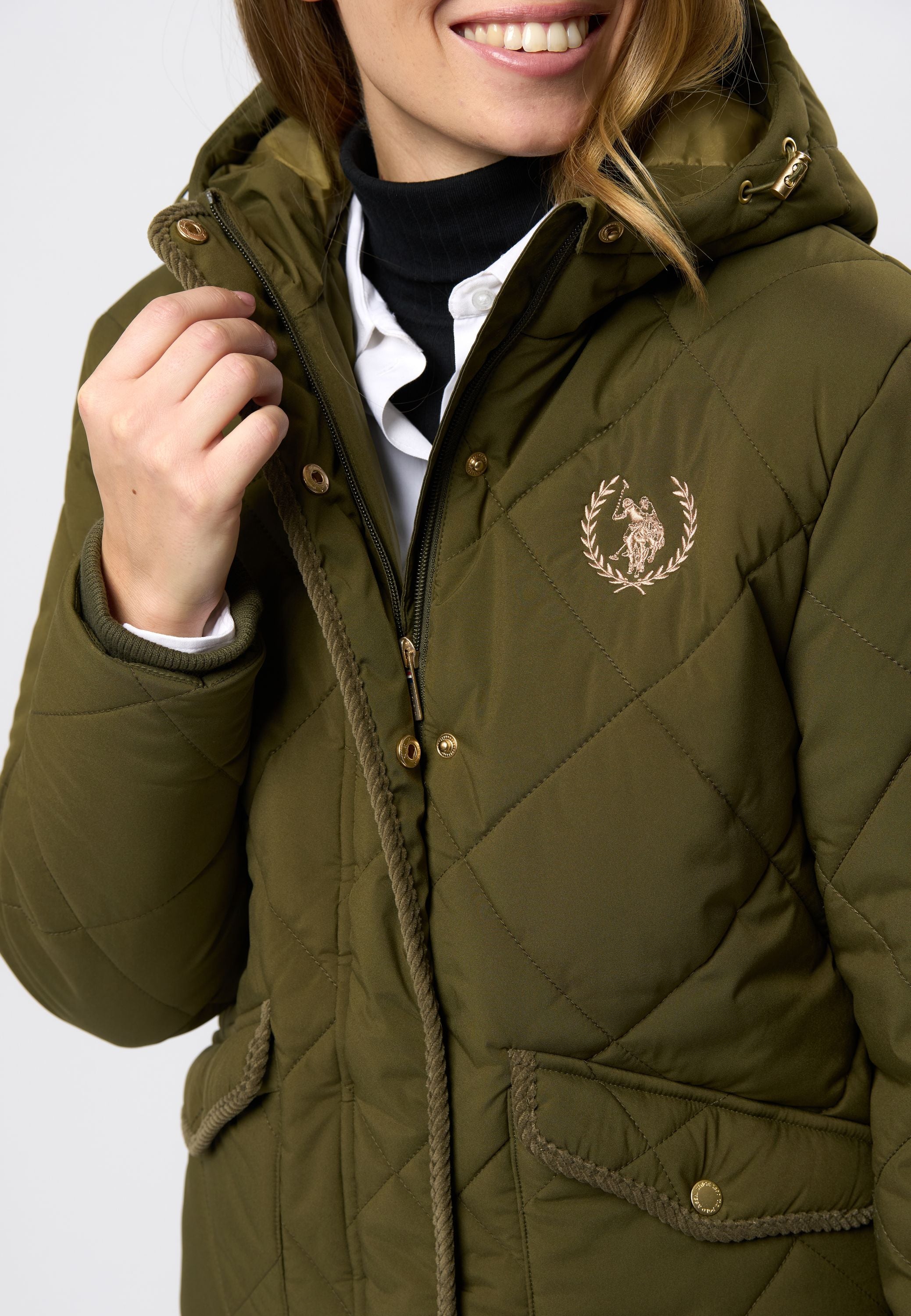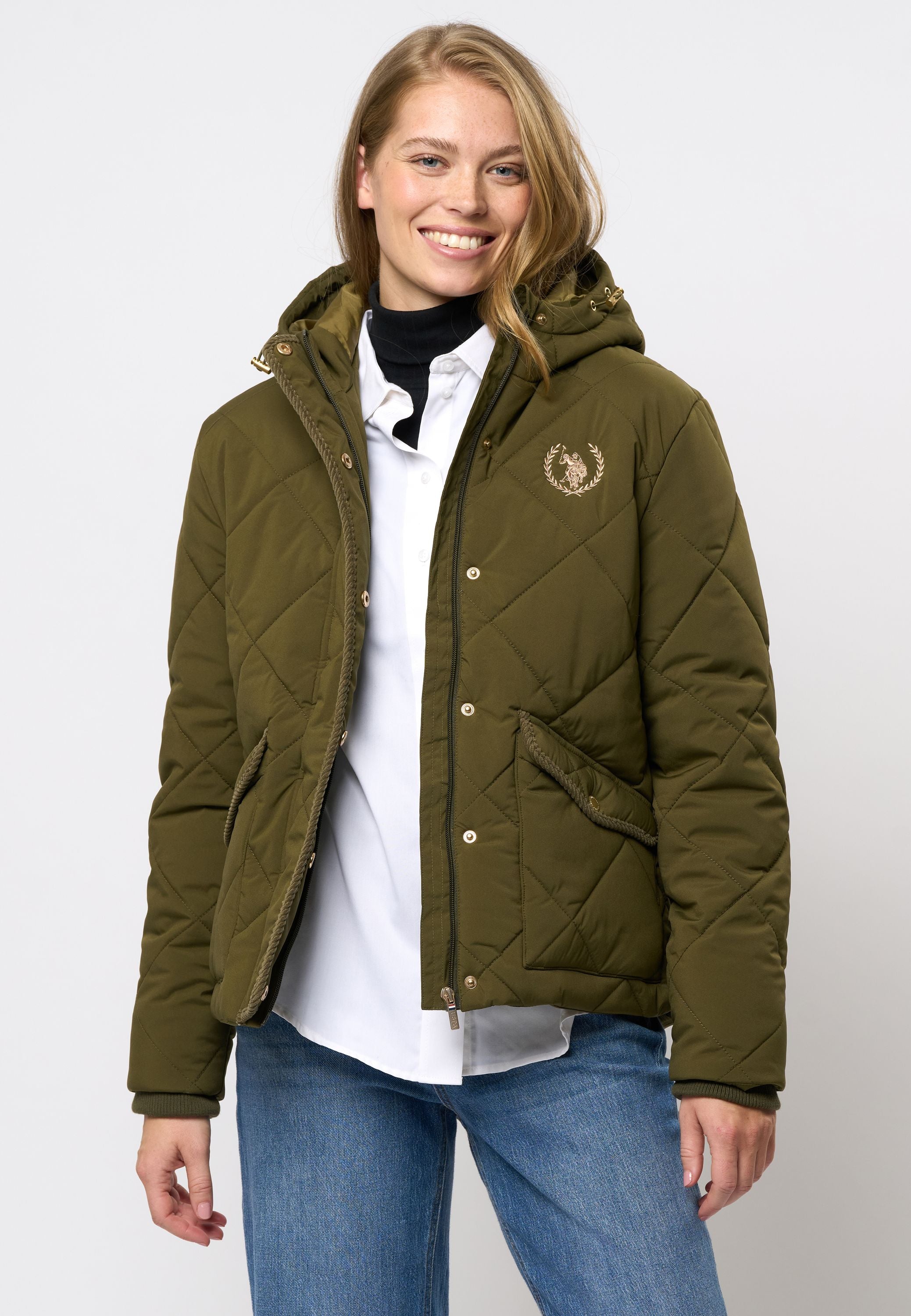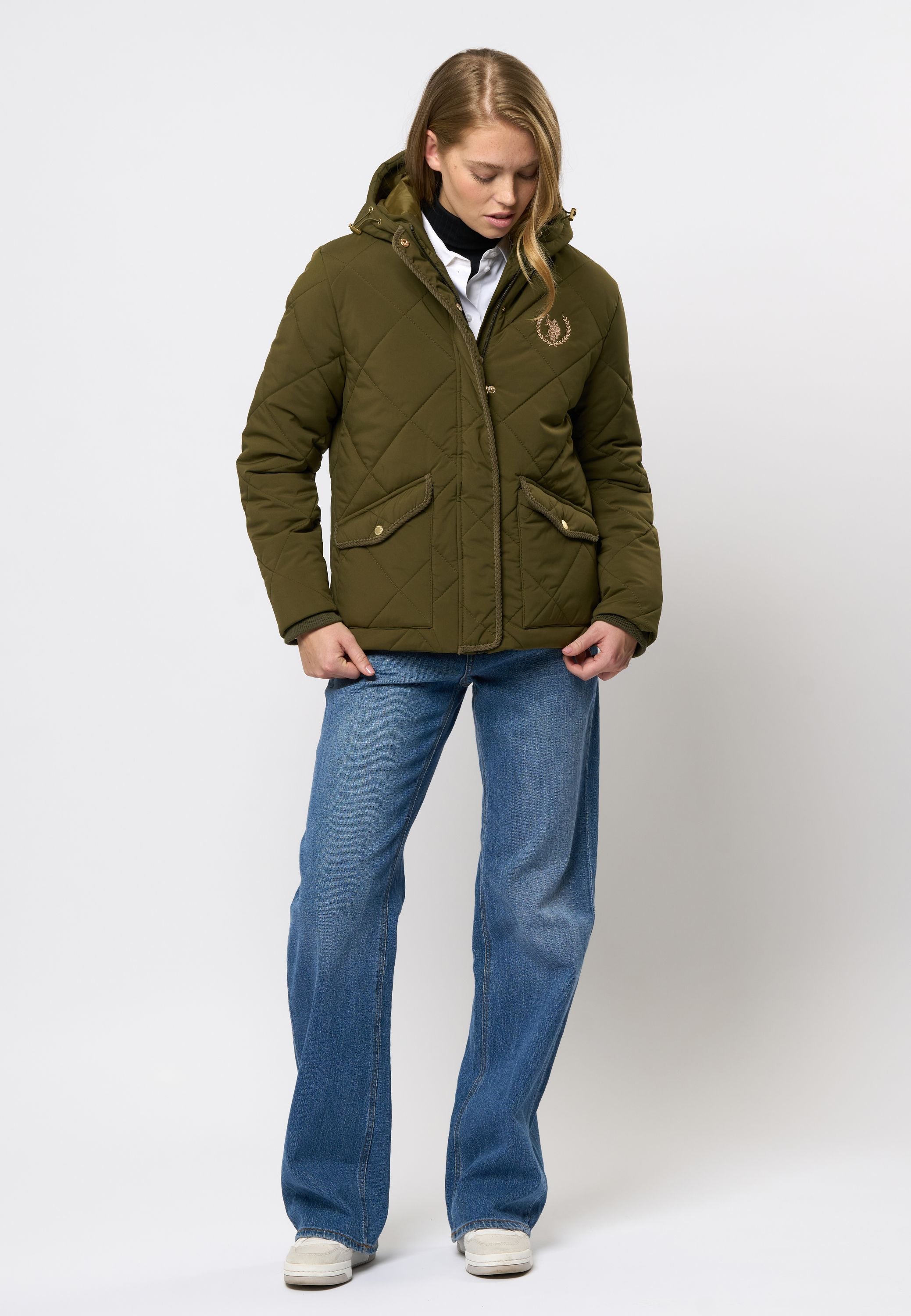 Kenya är en kortare jacka med en feminin och sportig look. Den diamantquiltade designen i kombination med dekorativa detaljer ger jackan karaktär, medan huvan och de ribbade kanterna gör den bekväm och funktionell. En mångsidig modell för övergångssäsonger och kalla morgnar.