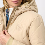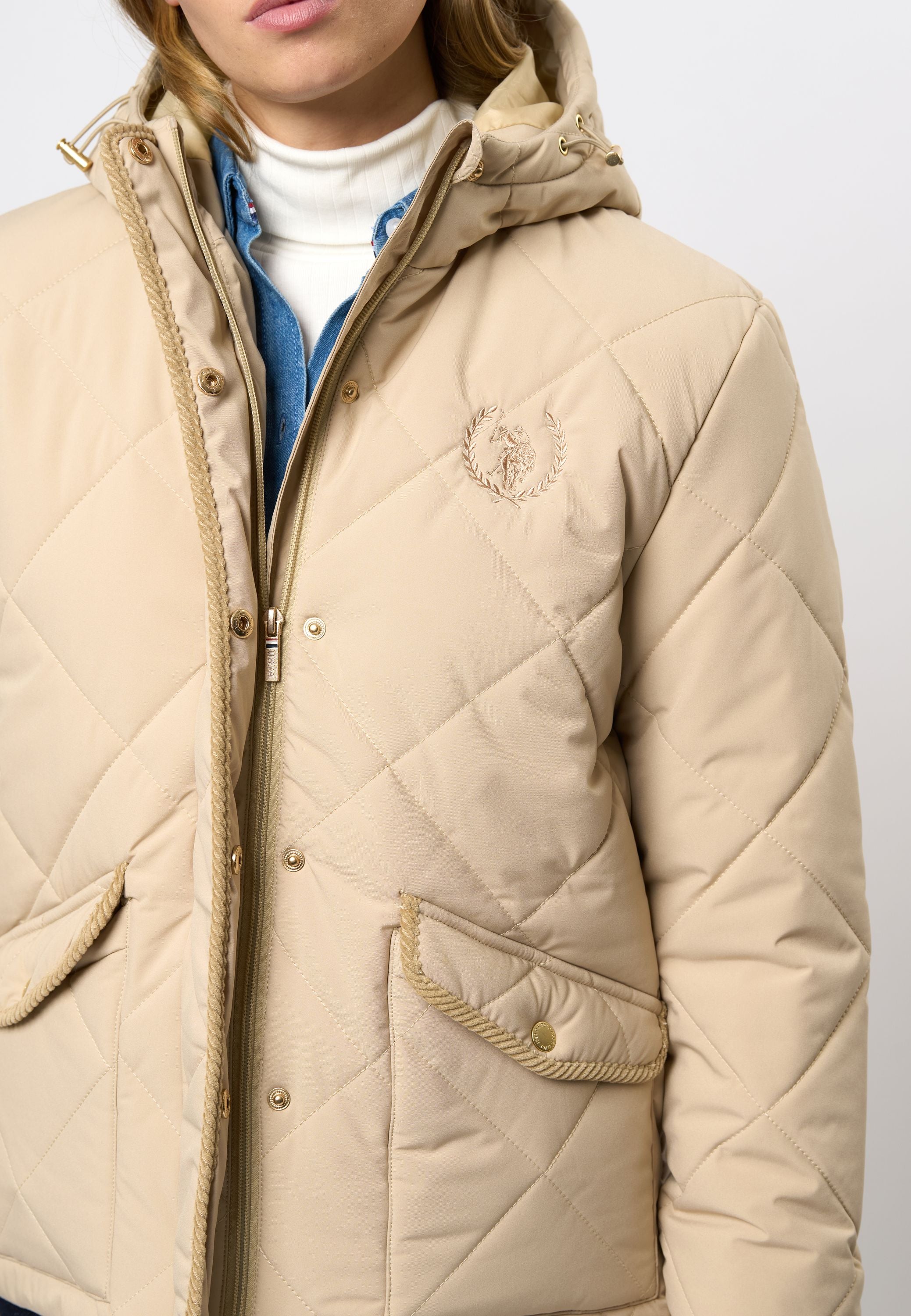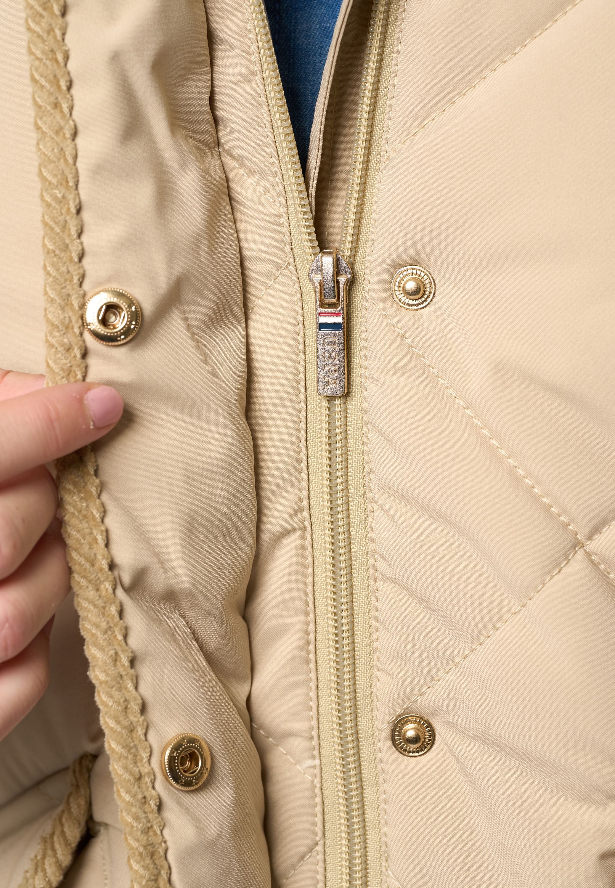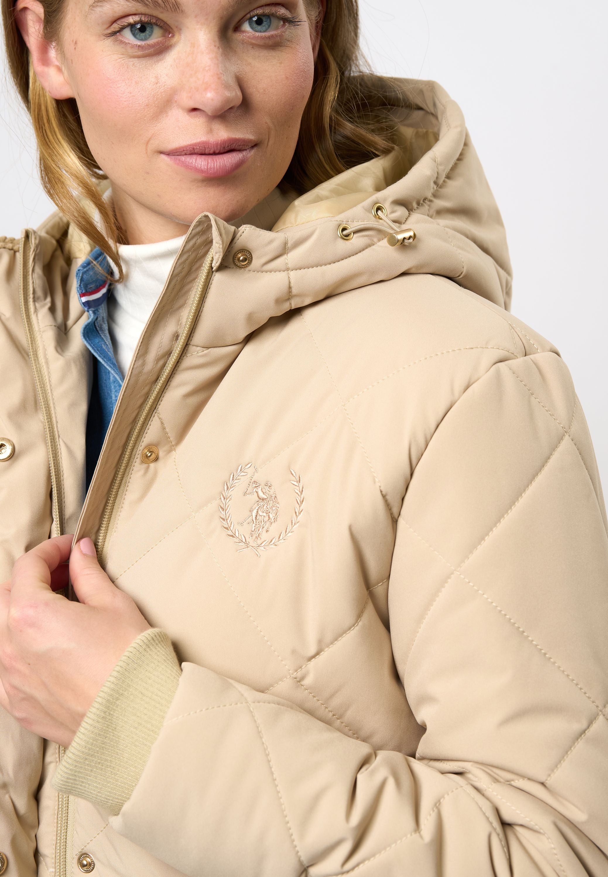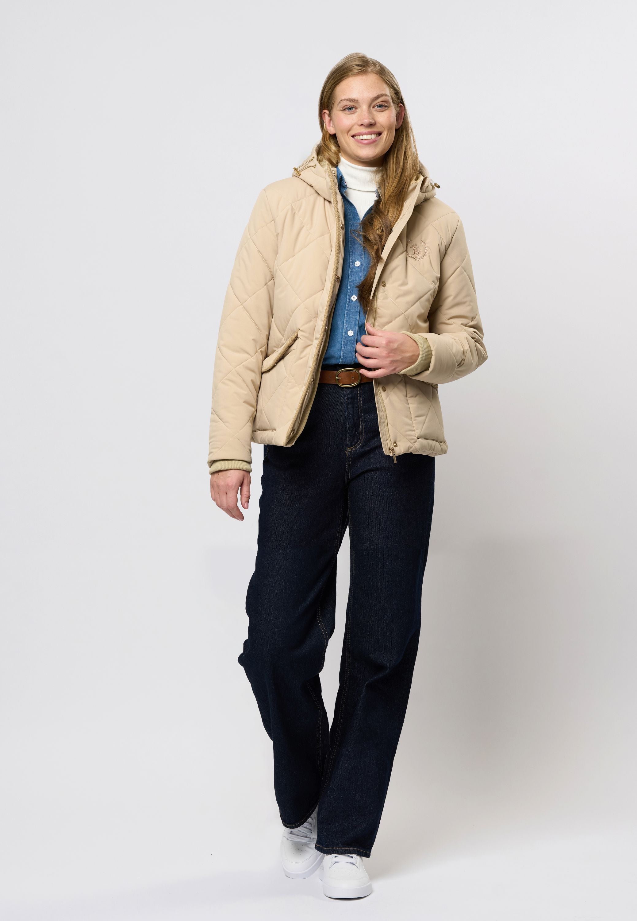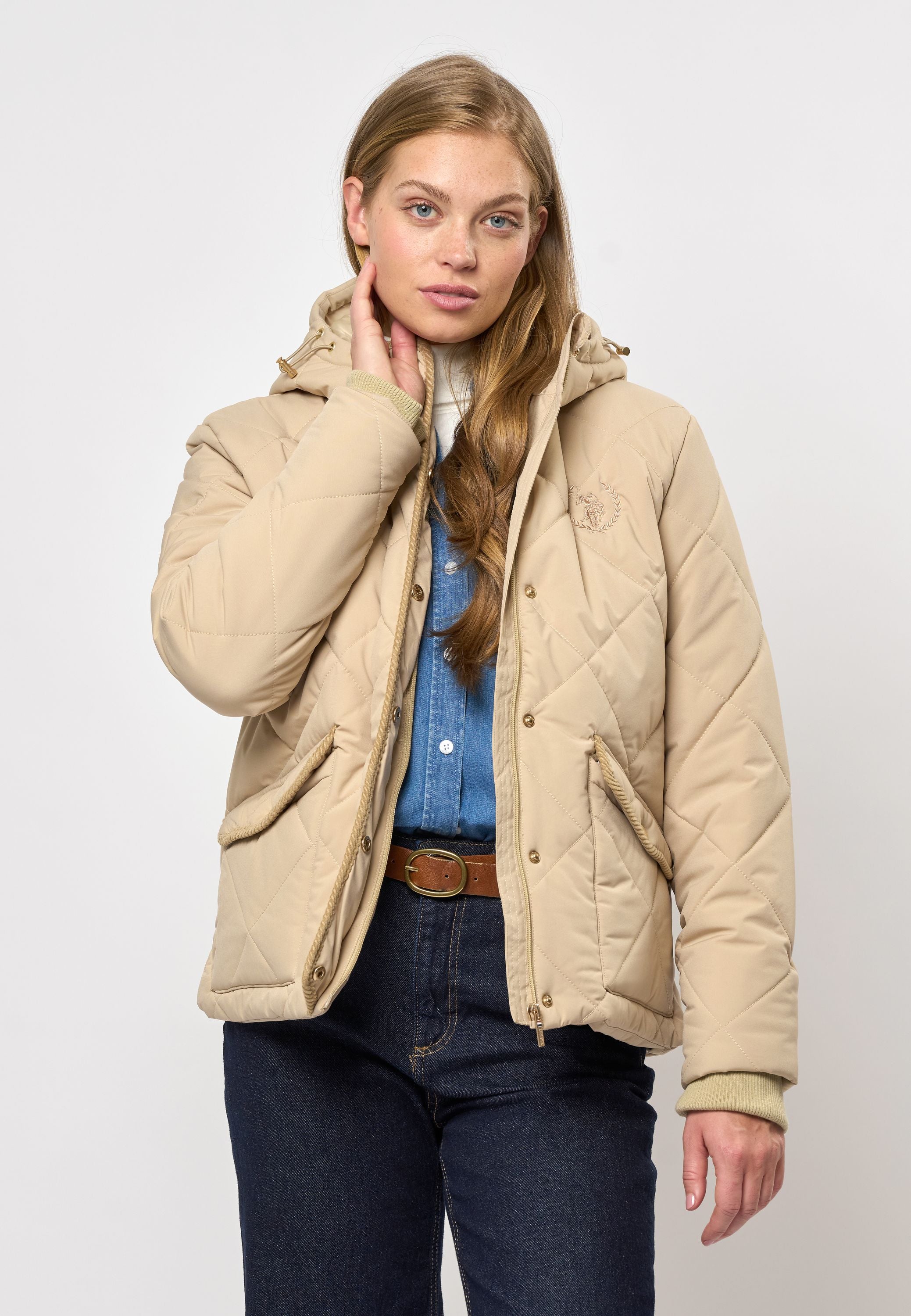 Kenya är en kortare jacka med en feminin och sportig look. Den diamantquiltade designen i kombination med dekorativa detaljer ger jackan karaktär, medan huvan och de ribbade kanterna gör den bekväm och funktionell. En mångsidig modell för övergångssäsonger och kalla morgnar.
