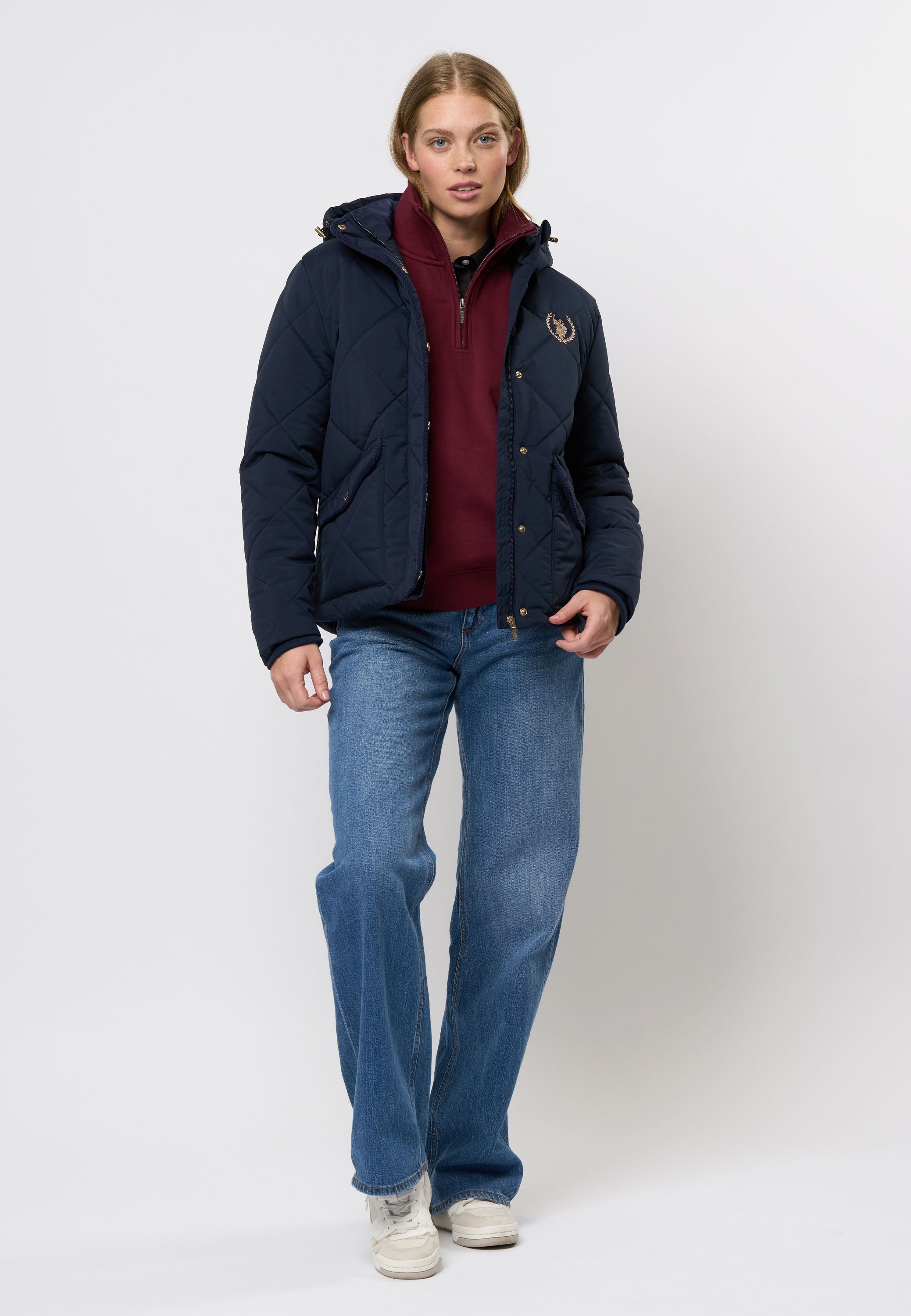Kenya är en kortare jacka med en feminin och sportig look. Den diamantquiltade designen i kombination med dekorativa detaljer ger jackan karaktär, medan huvan och de ribbade kanterna gör den bekväm och funktionell. En mångsidig modell för övergångssäsonger och kalla morgnar.
