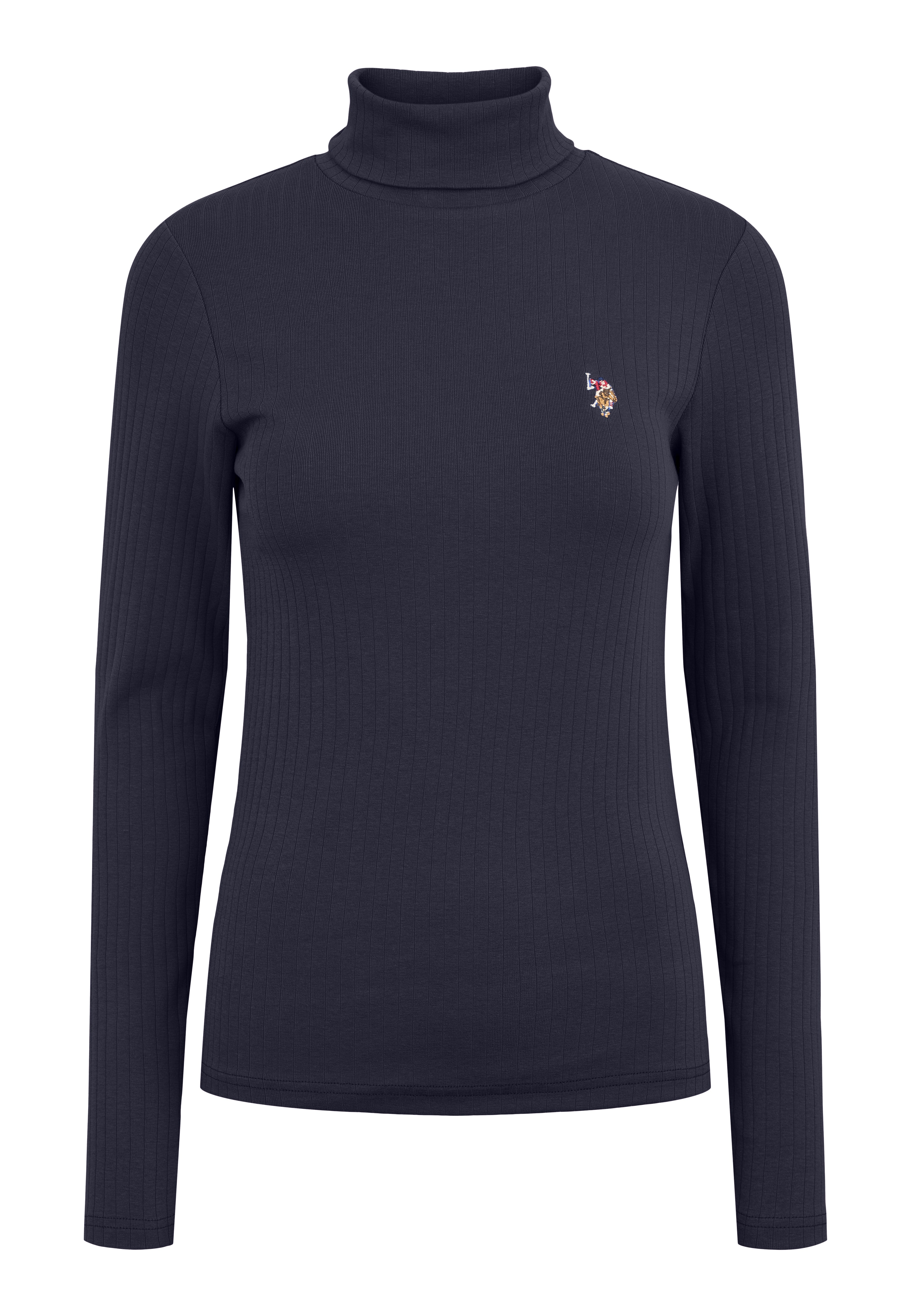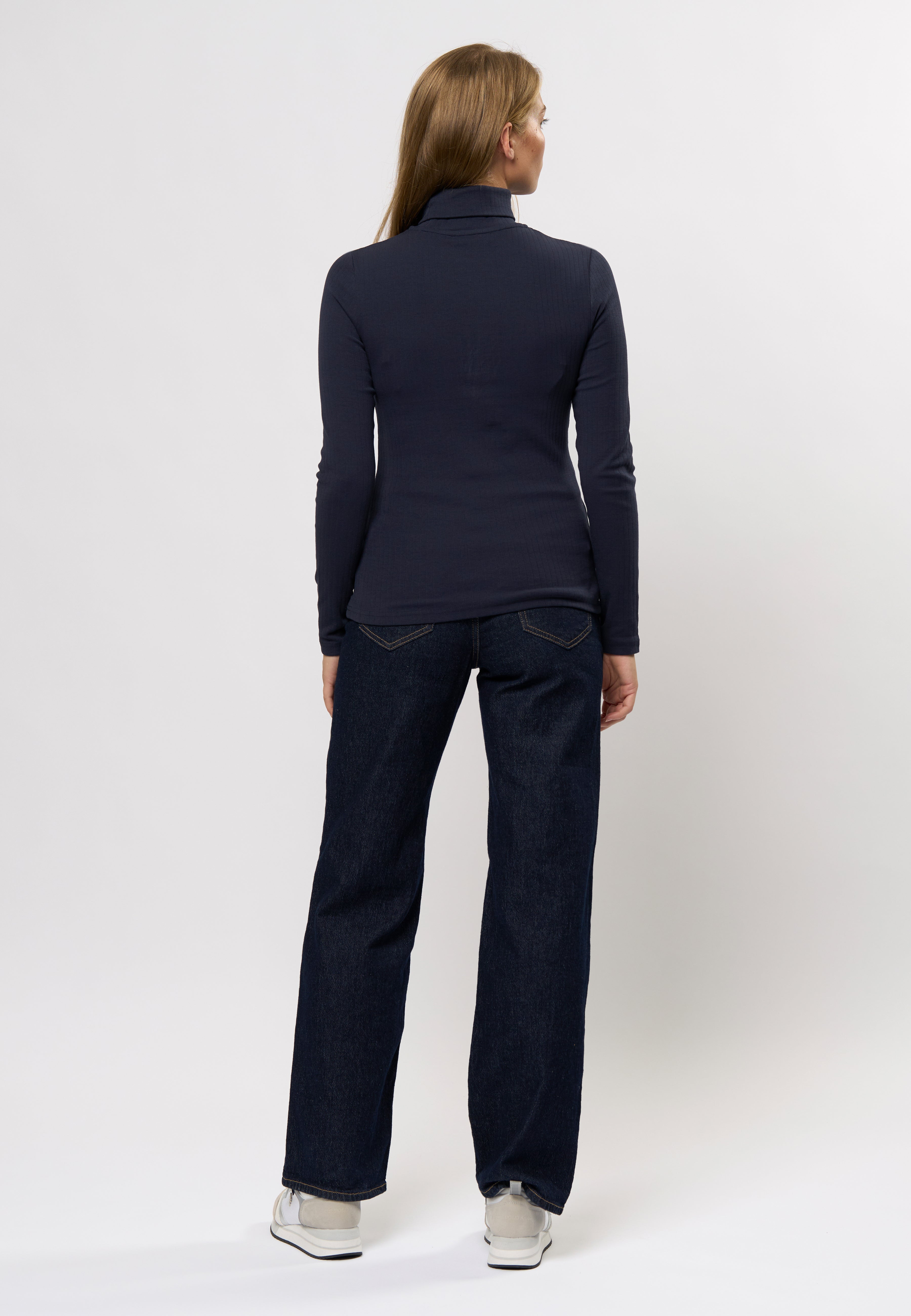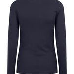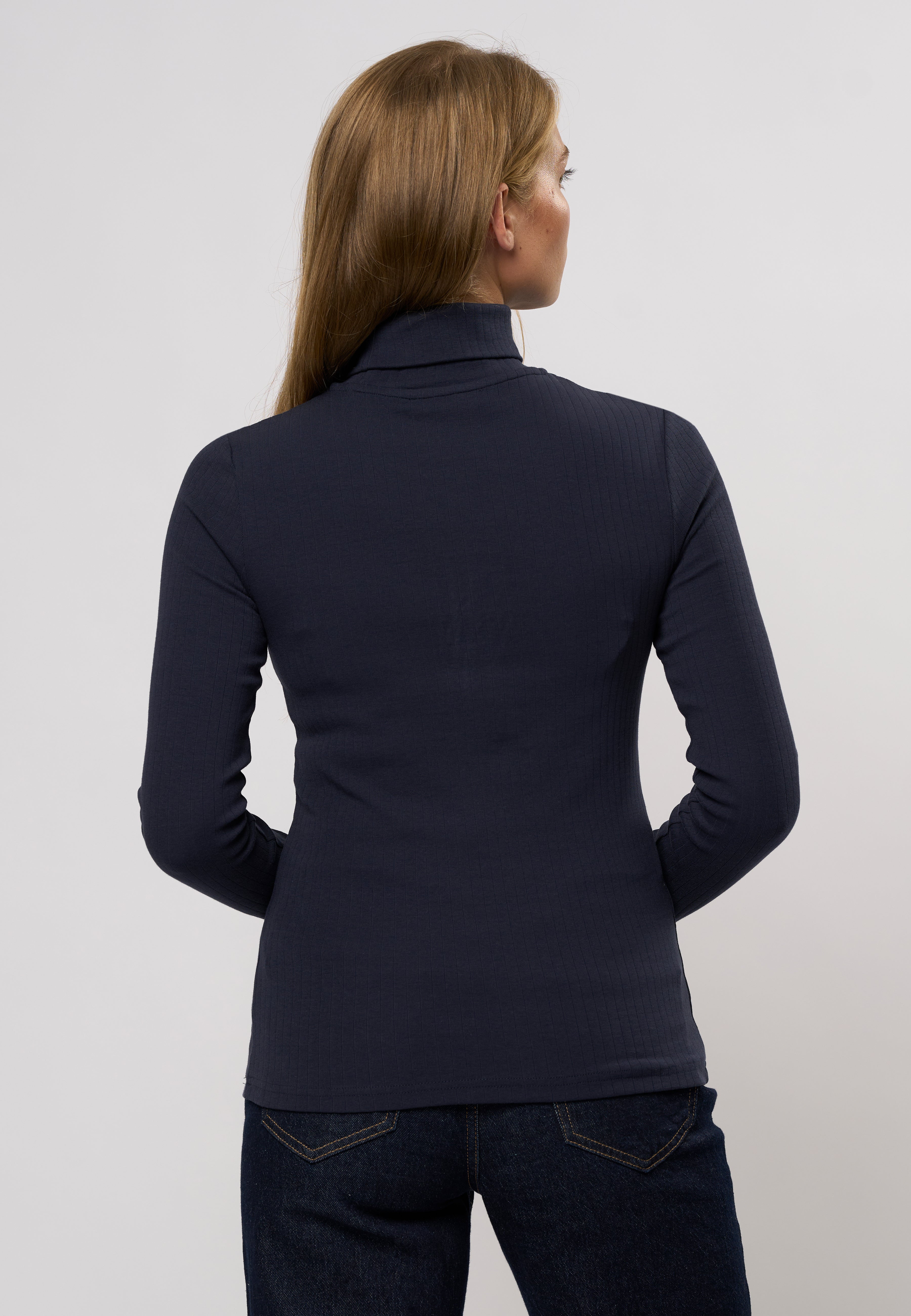 Karla är en långärmad T-shirt i ribbad struktur som är ett måste i garderoben. Den figurnära passformen och det breda ribbmönstret ger ett smickrande uttryck, medan den höga polokragen tillför enkel elegans och värme. Använd den ensam eller som lager på lager under en stickad tröja eller kavaj.