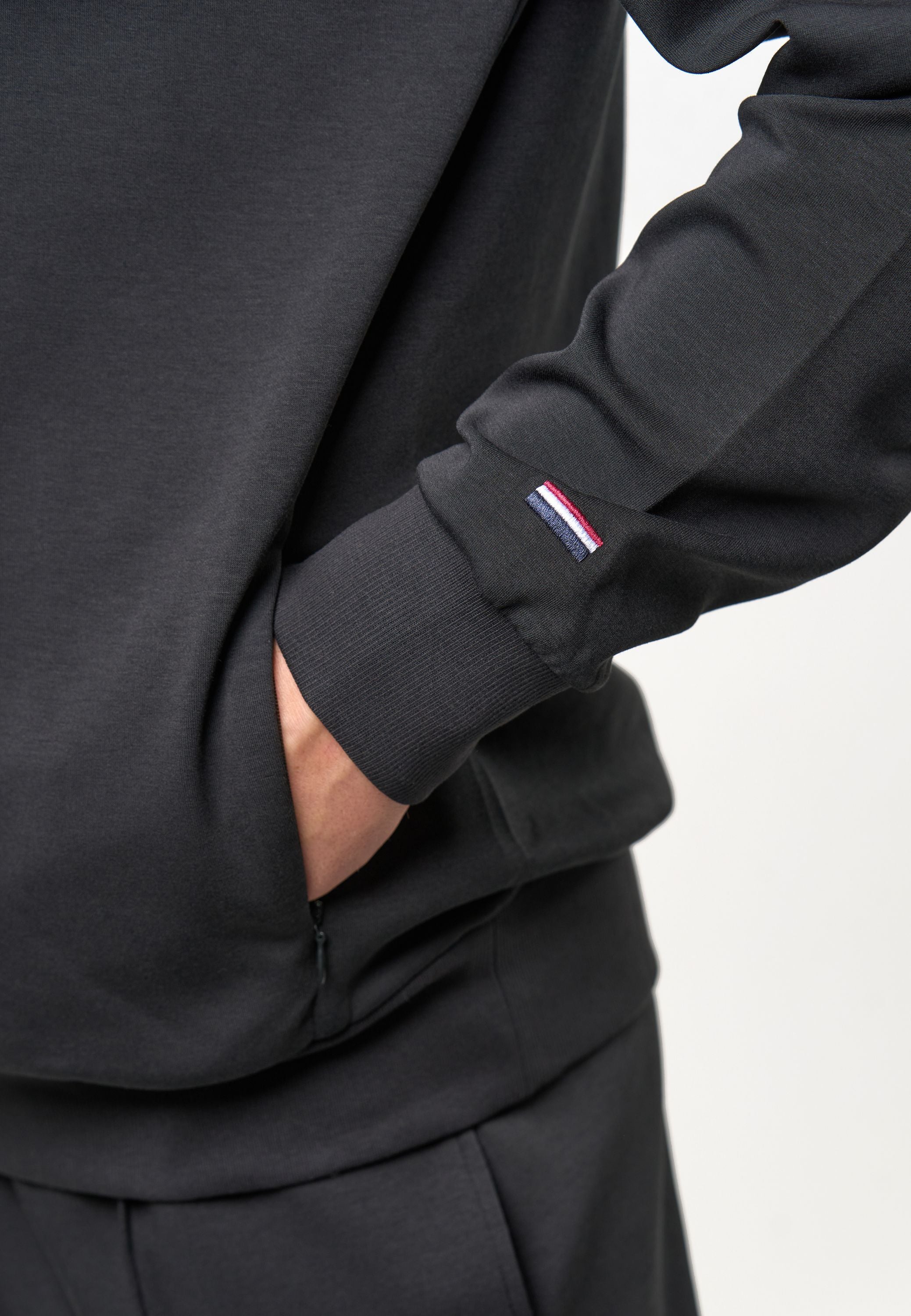 Uppgradera din avslappnade garderob med denna Kuno-tröja. Tillverkad av mjukt, bekvämt tyg, kommer den i klassisk svart med en minimalistisk design. Med en diskret broderad logotyp på bröstet och ribbade detaljer, är den perfekt för enkel, elegant vardagsbruk.