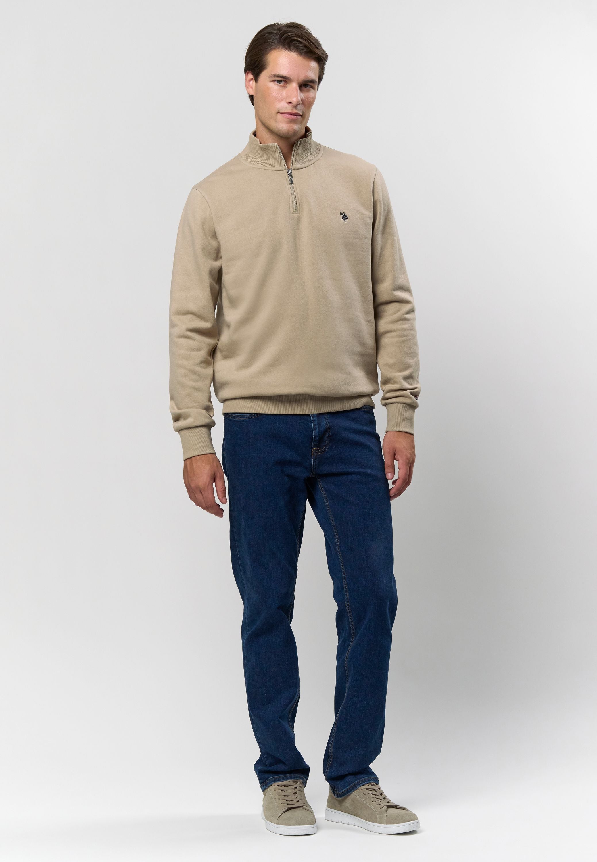Kurt är en klassisk half-zip sweatshirt med en enkel och tidlös design. Den har en hög krage med dragkedja och ribbade kanter vid ärmar och nederkant. Sweatshirten är gjord i en mjuk bomullsblandning med en broderad logotyp på bröstet. Perfekt för lager-på-lager eller som en självständig del för en stilren look.