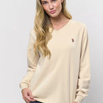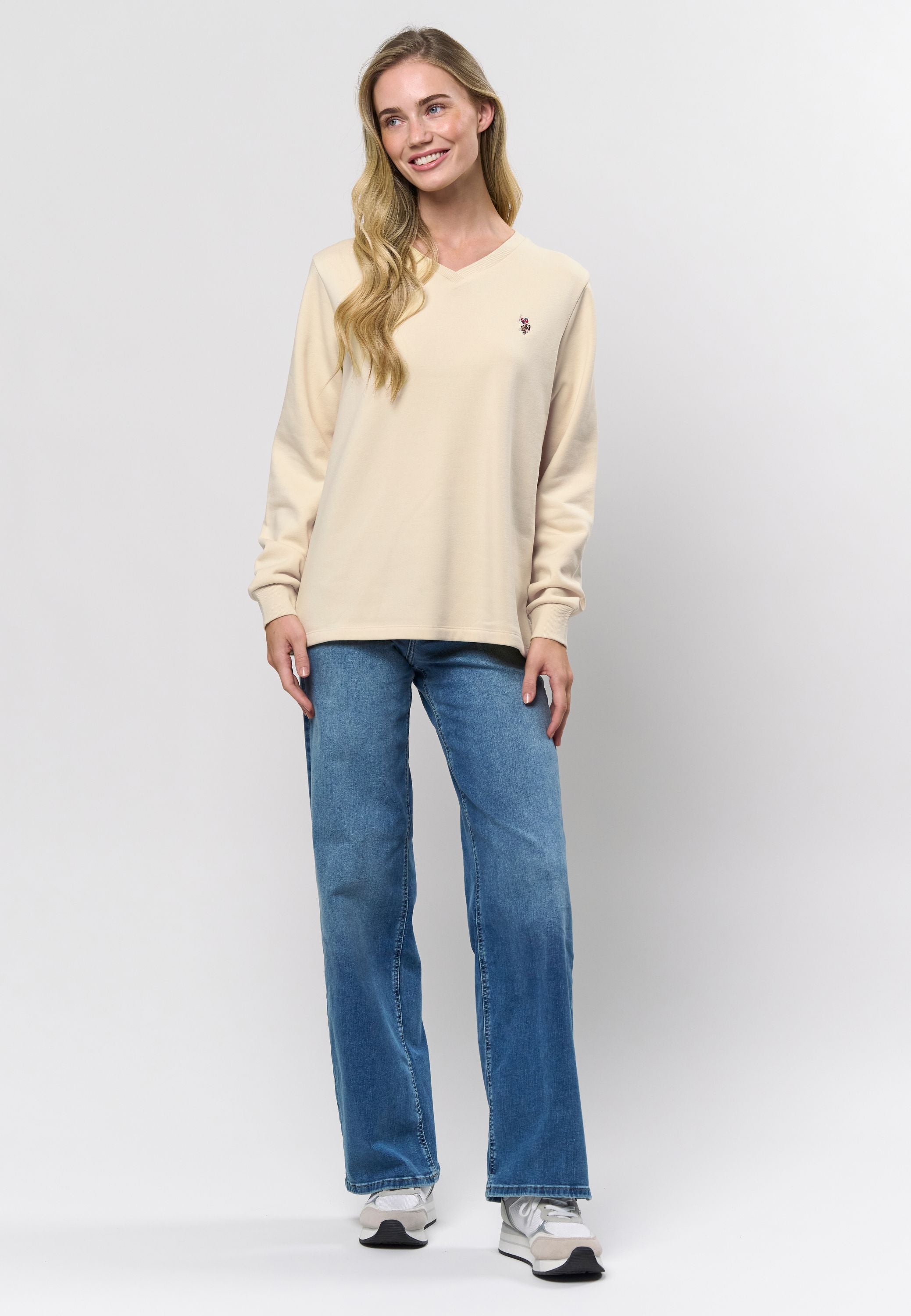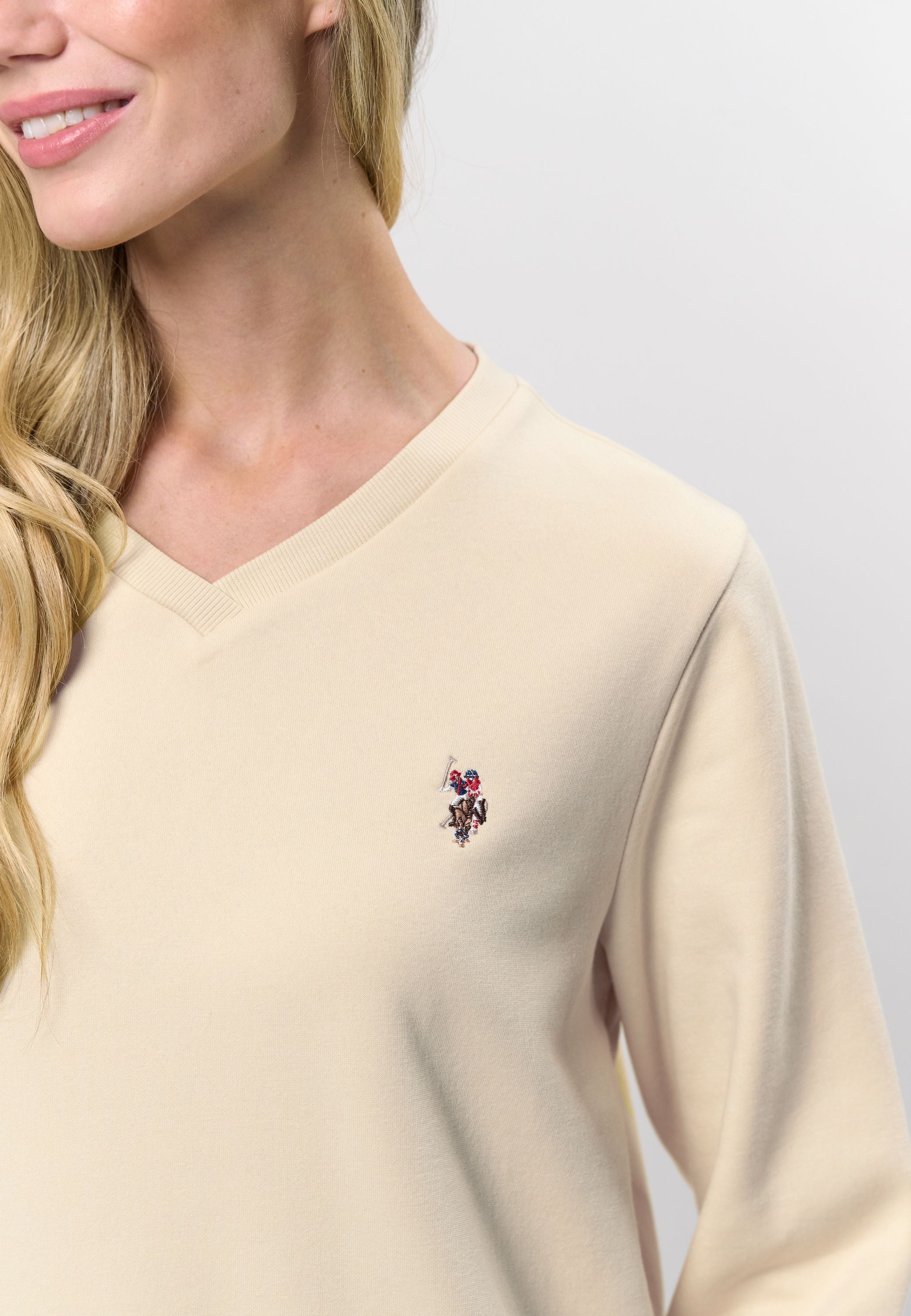 Macy är en klassisk V-ringad sweatshirt med en sportig twist, perfekt för vardagskläder. Den mjuka bomullsblandningen och den enkla silhuetten ger en bekväm och snygg passform. Tröjan har ribbade muddar och midja och vår ikoniska broderade logotyp på bröstet för en elegant, igenkännlig look.