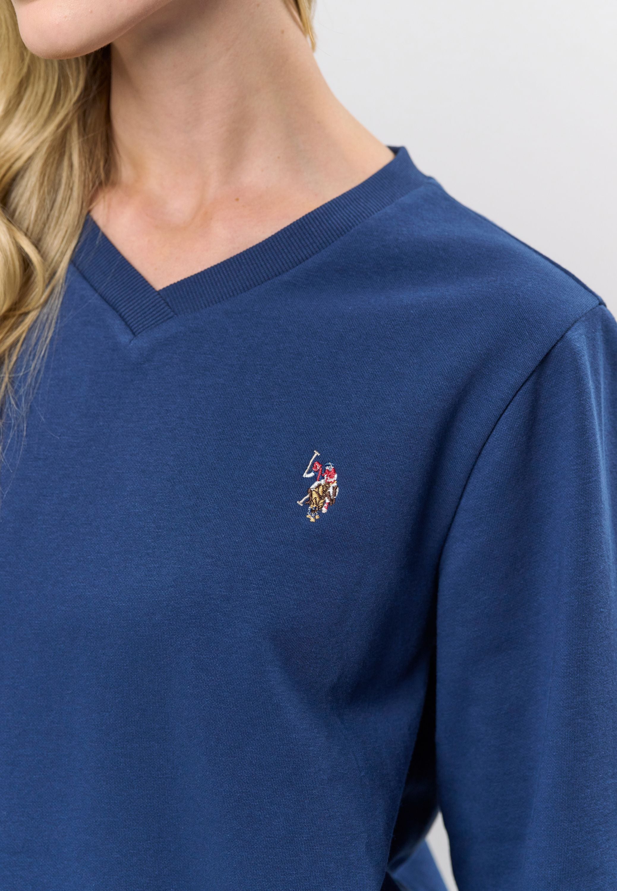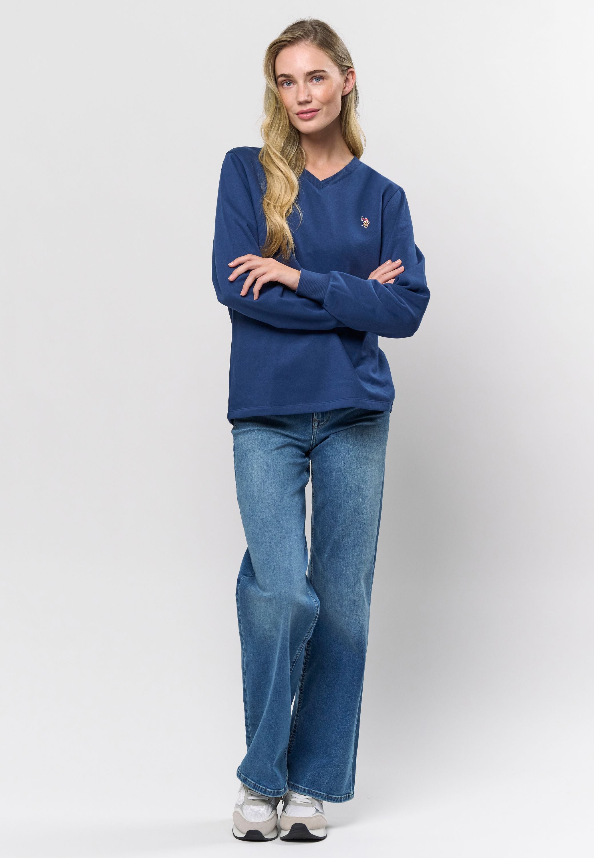 Macy är en klassisk V-ringad sweatshirt med en sportig twist, perfekt för vardagskläder. Den mjuka bomullsblandningen och den enkla silhuetten ger en bekväm och snygg passform. Tröjan har ribbade muddar och midja och vår ikoniska broderade logotyp på bröstet för en elegant, igenkännlig look.
