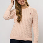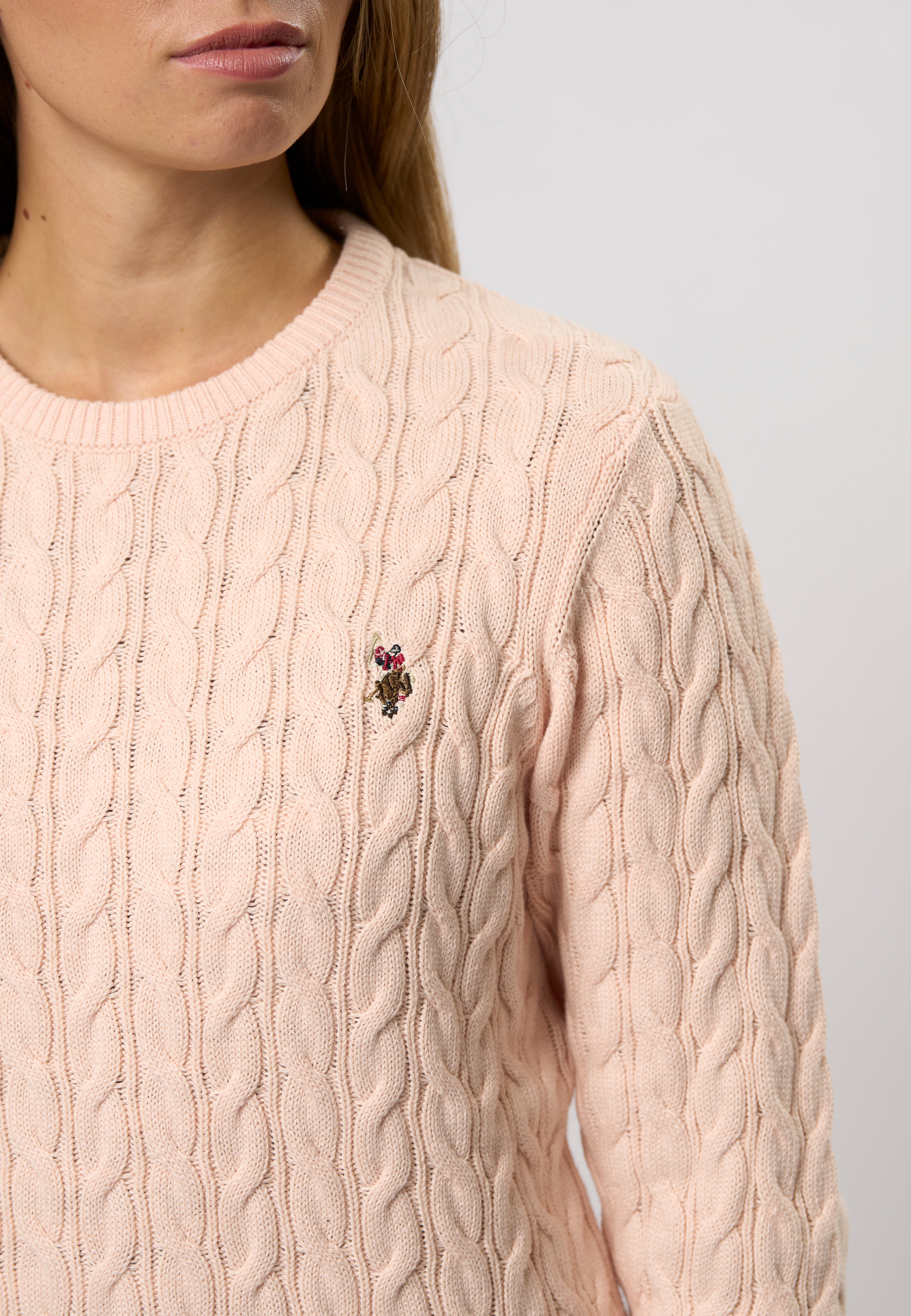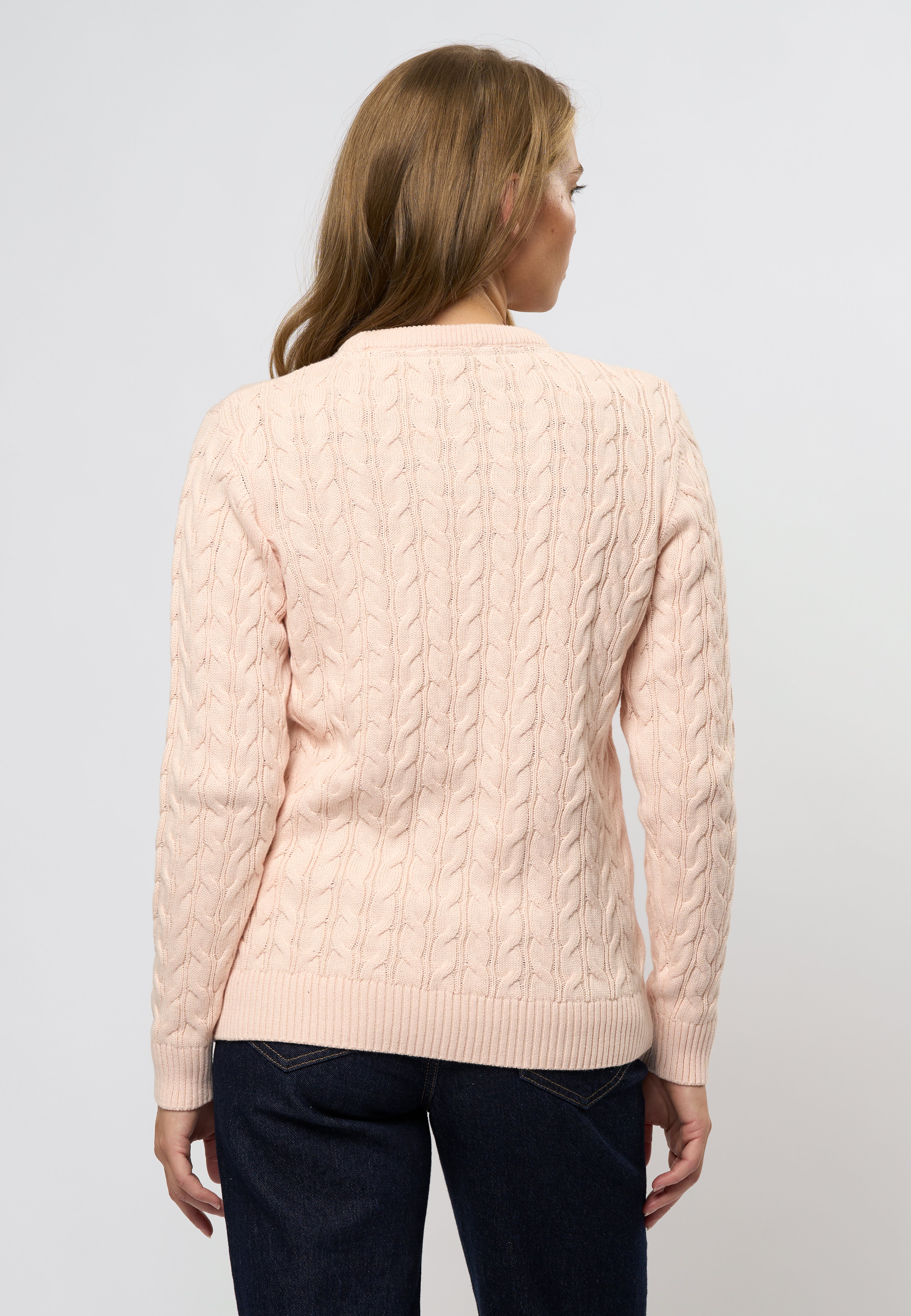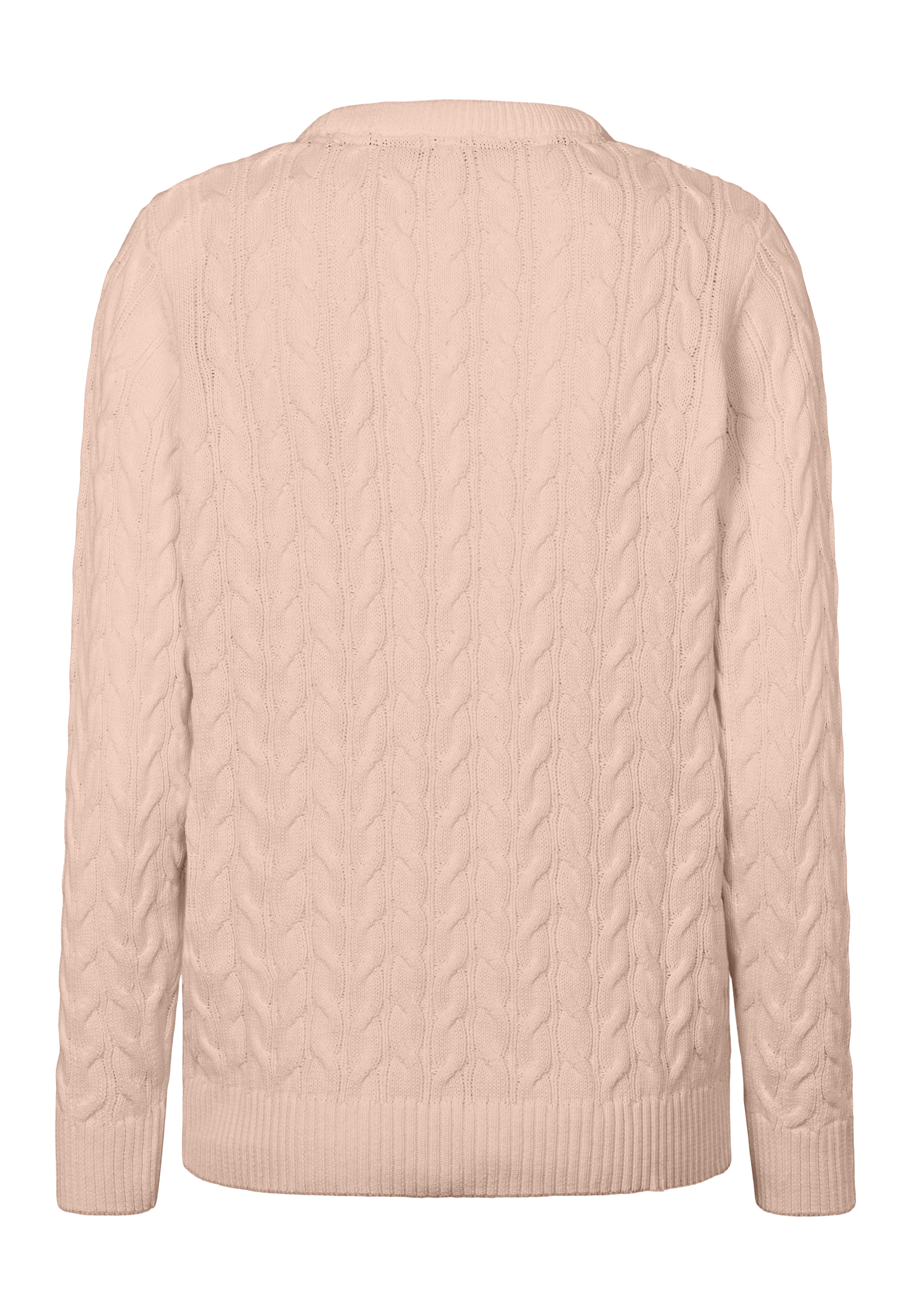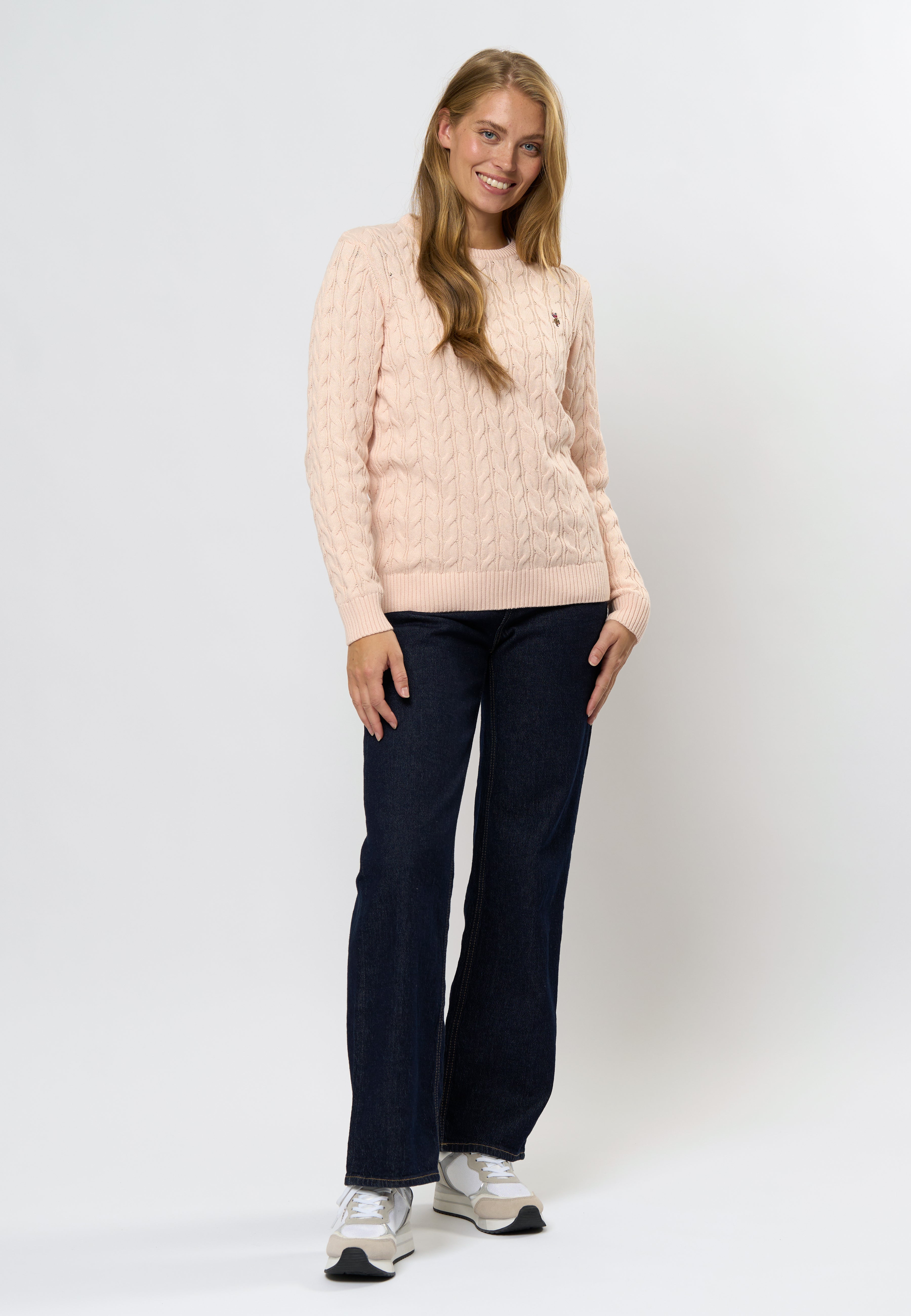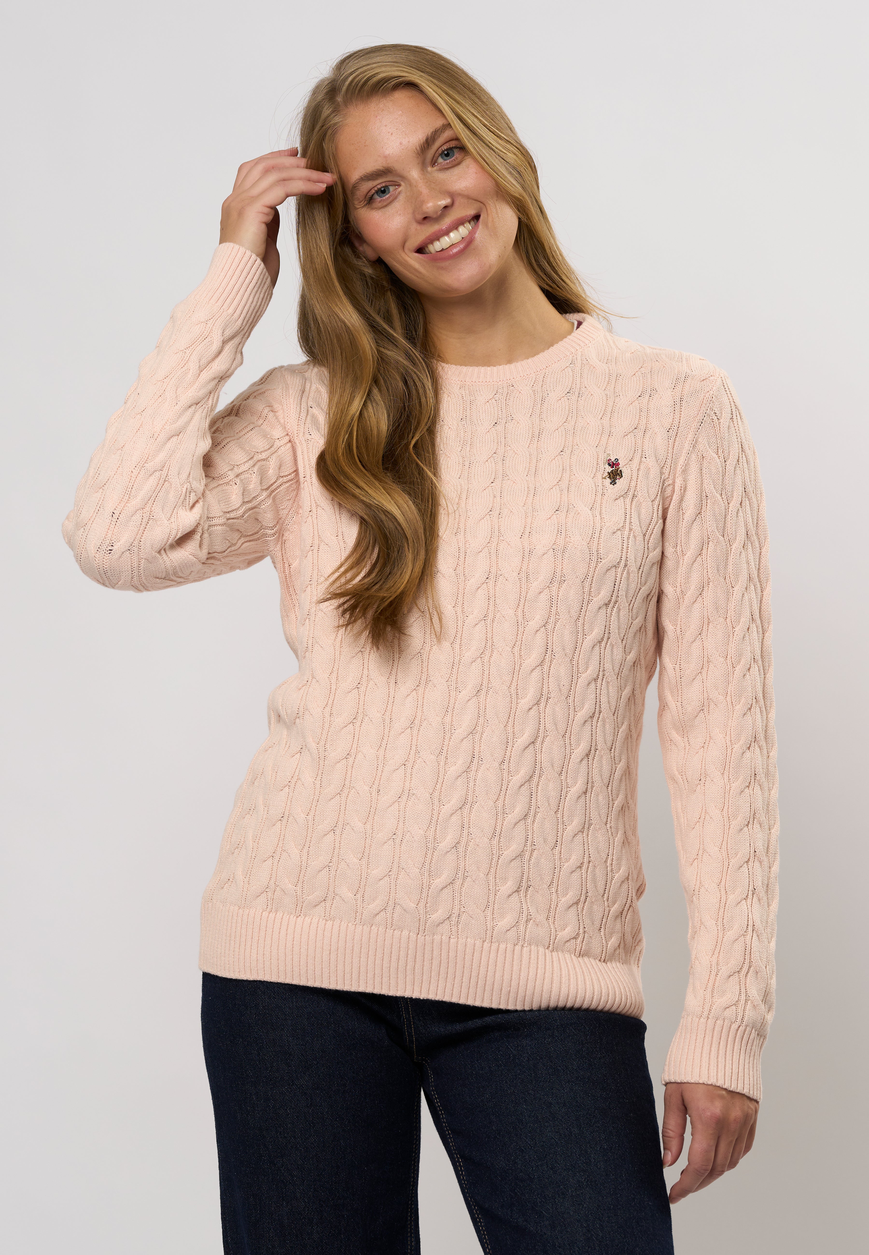 Madeline är en klassisk kabelstickad med rund hals och ett stilrent, tidlöst uttryck. Den har en normal passform och är avslutad med ribb i botten och ärmar för en snygg finish. Den broderade logotypen på bröstet ger en sportig touch och framhäver märkets signaturstil. Lätt att styla för både vardag och trevligare tillfällen.