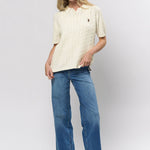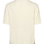 Magda är en elegant kortärmad stickad tröja med ett klassiskt kabelstickat mönster som kombinerar det tidlösa med det moderna. Den har en polokrage med knappknäppning och en diskret broderad logotyp på bröstet, vilket ger en exklusiv touch. Den finstickade tröjan i 100 % ekologisk bomull gör den bekväm och andningsbar – perfekt för både avslappnade vardagslooker och mer eleganta outfits. Bär den ensam eller som en del av en lager-på-lager-look.