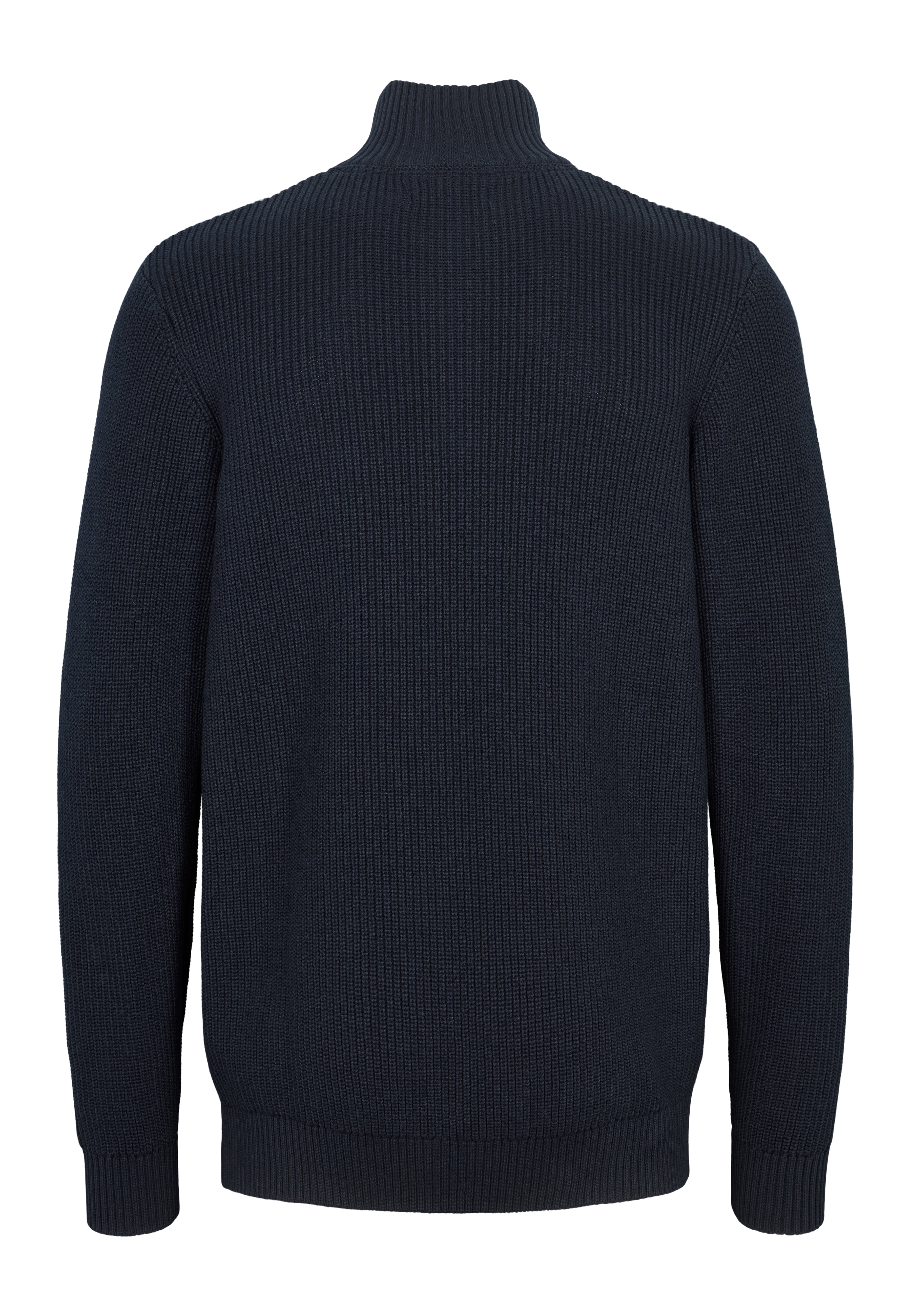 • Kraftig strukturstickad med hög krage och ribbade kanter