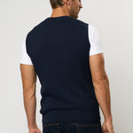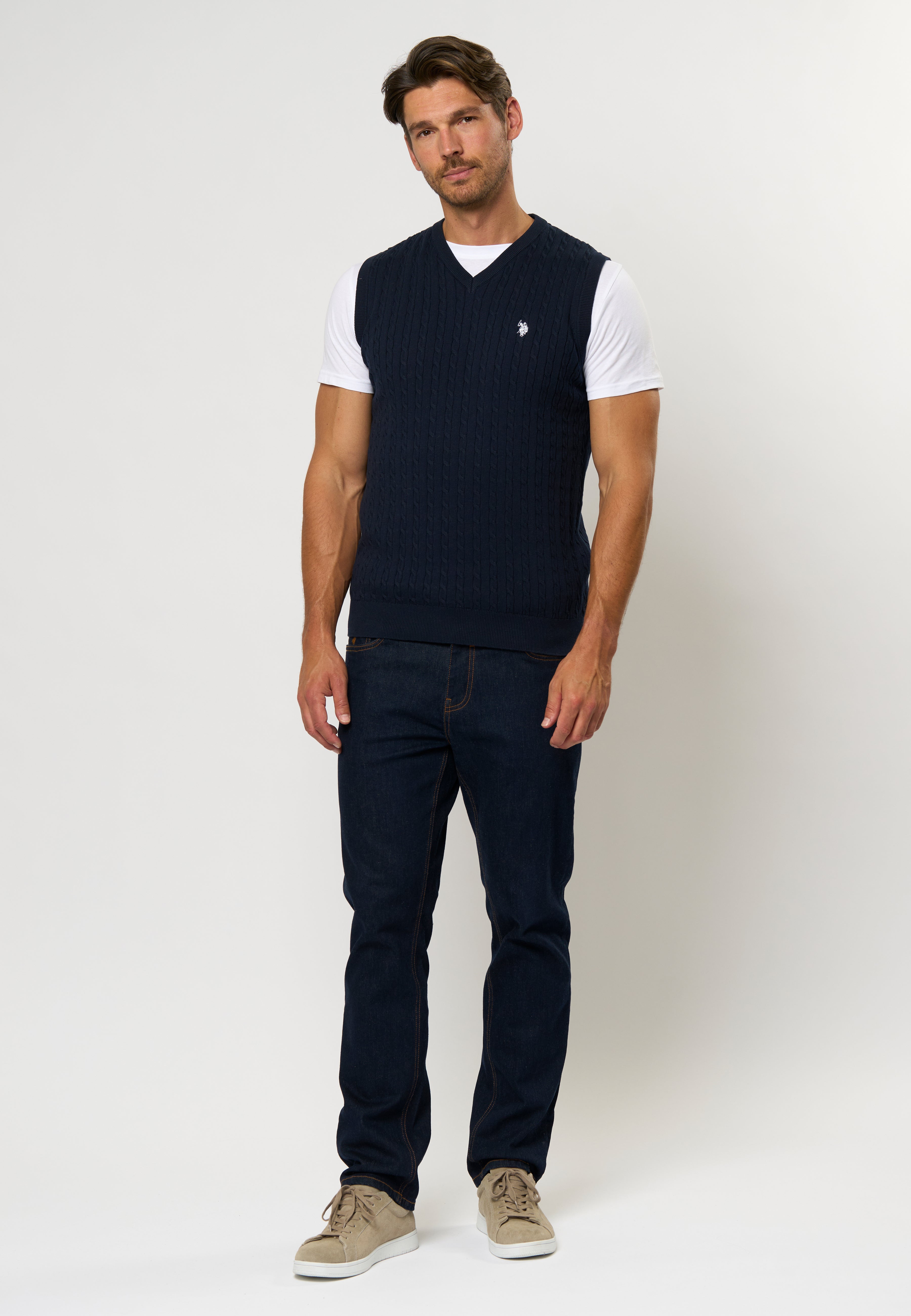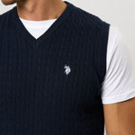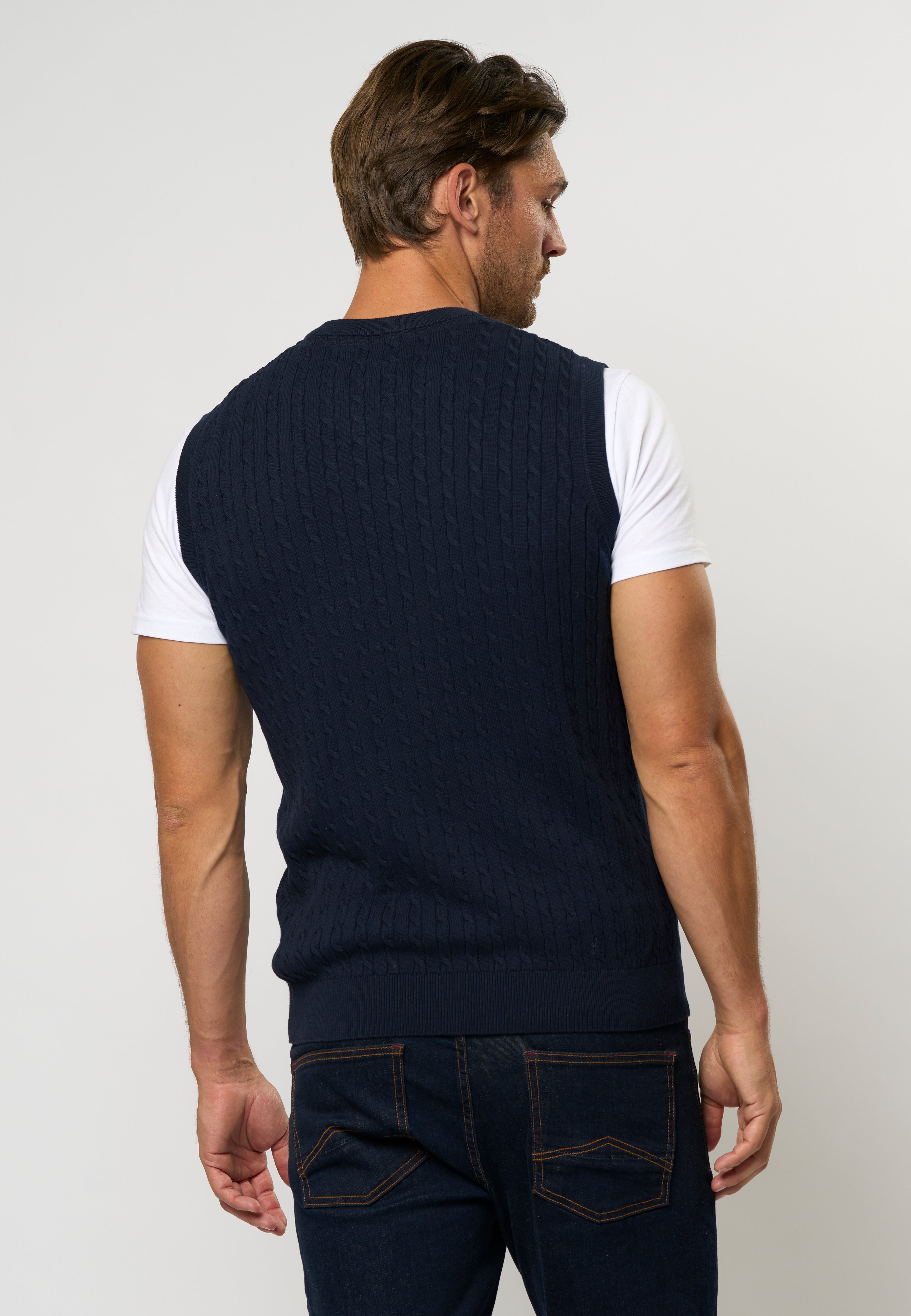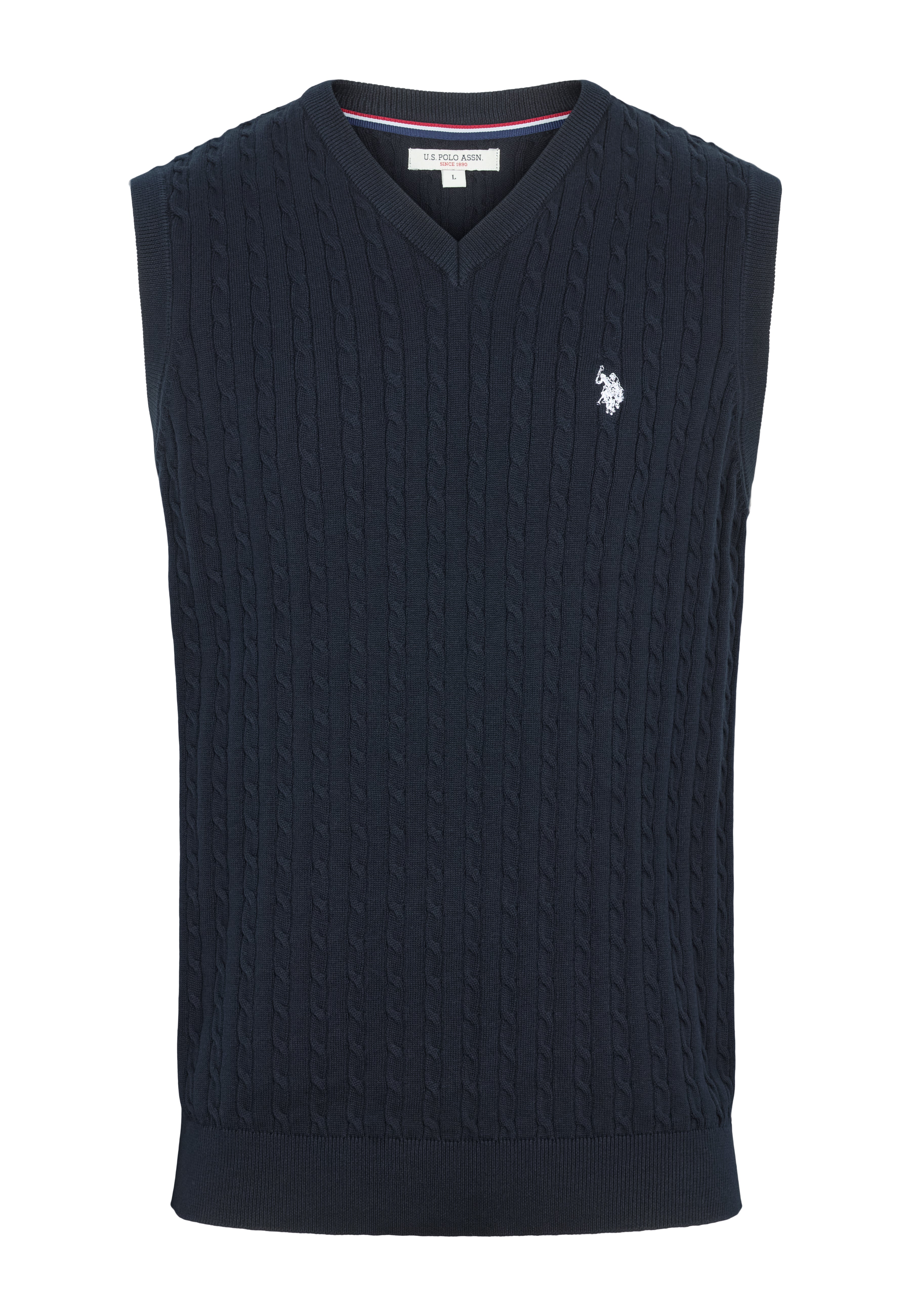 Samuel är en klassisk stickad väst med ett elegant och tidlöst uttryck. Det kabelstickade mönstret och den v-formade urringningen ger en välklädd look som fungerar både över skjortan och som ett lager ovanpå vardagen. Kvaliteten är mjuk och skön och har en naturlig lätthet som gör att den passar året runt. Logotypen på bröstet ger en diskret men igenkännlig varumärkeskänsla.