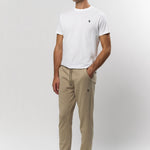 Terkel är ett par klassiska träningsbyxor med sportig attityd och bekväm passform. De har ett elastiskt midjeband med dragsko och mjuka ribbade kanter vid anklarna som håller formen. Sidofickorna ger plats för småsaker och den broderade loggan vid höften fulländar looken. Ett par mångsidiga byxor för både hemkomfort och vardaglig användning - lätt att kombinera med både T-shirts och sweatshirts.