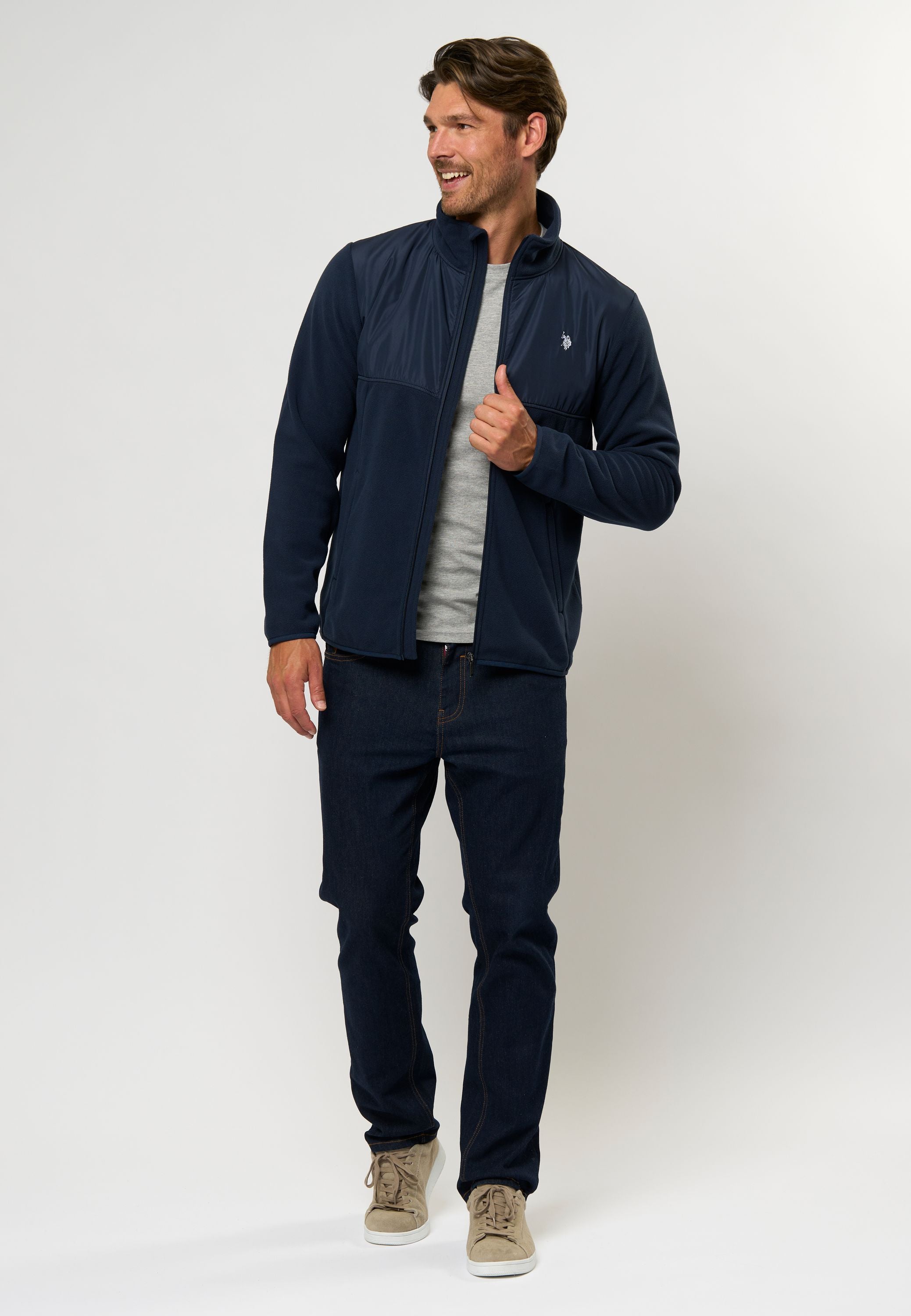 Vitus är en mjuk och skön fleece med hög krage och sportig twist. Den övre delen av jackan är förstärkt med en slät panel, vilket ger både visuell kontrast och extra slitstyrka vid axlar och bröst. Fleecematerialet känns lätt mot kroppen och håller effektivt värmen - perfekt för lager eller som en lätt jacka vid milt väder. Den har två diskreta sidfickor och en genomgående dragkedja framtill. Logotypen på bröstet ger en klassisk finish.
